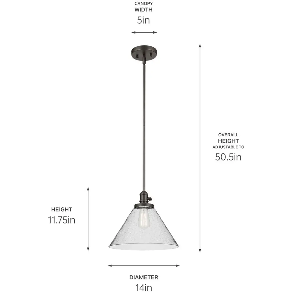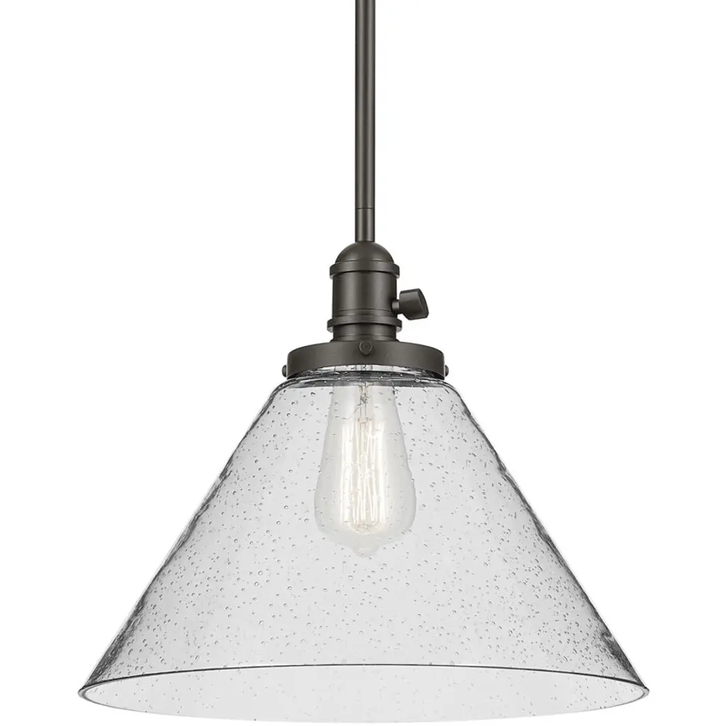 Offering convenience and ease in coordinating with other lighting options, the Avery 1 Light Cone Pendant is truly as versatile as it is beautiful. Avery's on-trend olde bronze finish creates a classic yet dramatic statement to any space while it complements a variety of decor, including industrial aesthetics. Its clear seeded glass adds to its charm by providing a beautiful, ambient lighting to the entire room and is easy to remove for convenience and ease of cleaning and replacement. A stem with a functional on/off switch on its socket completes the look.