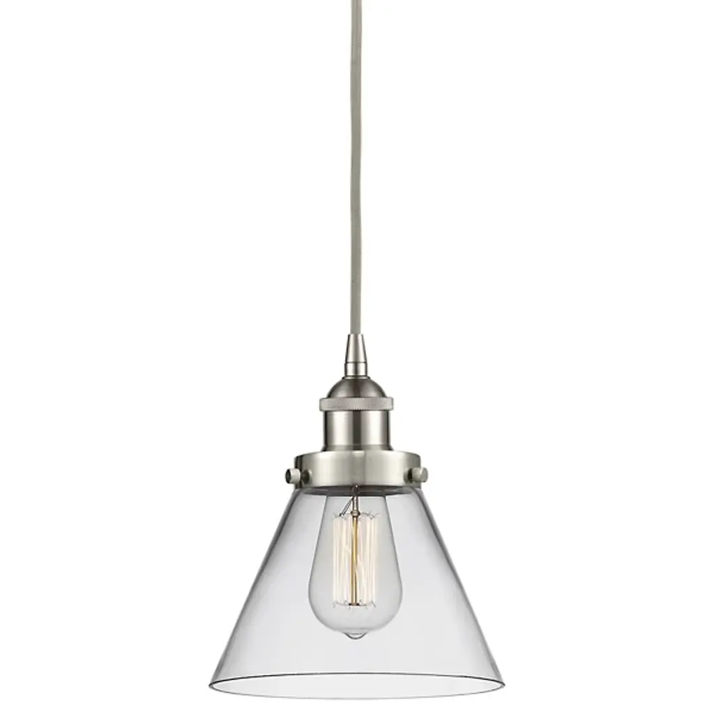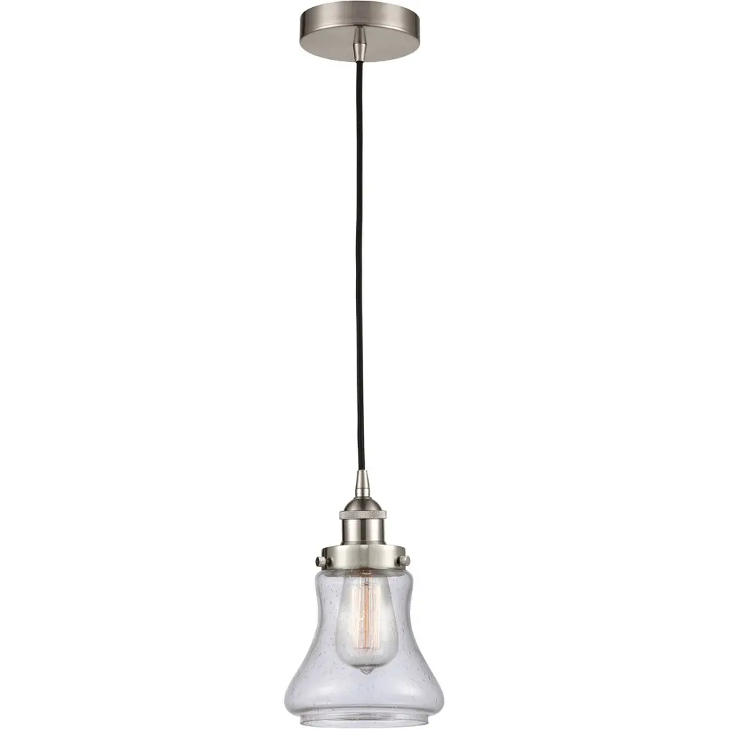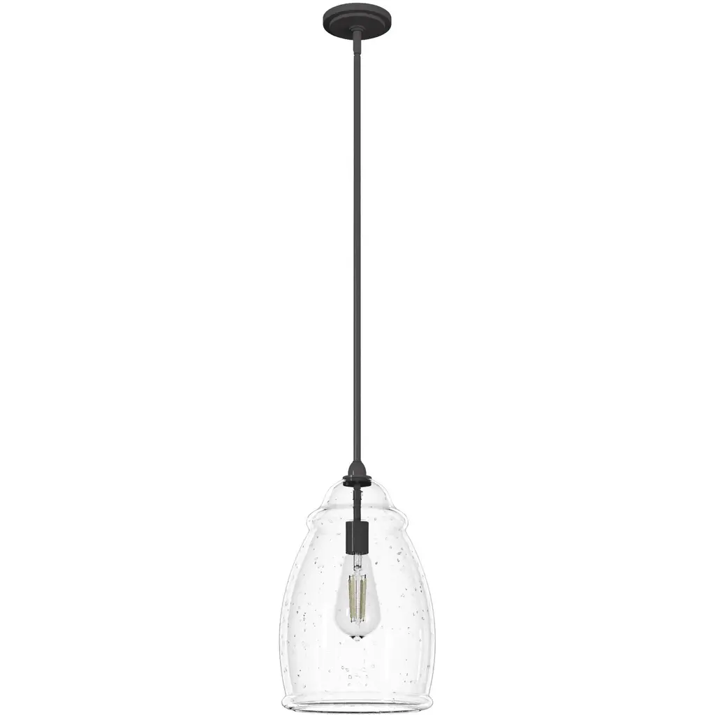 The Avery Pendant by Kichler is charming and uncomplicated. With a goblet shaped Clear Seeded Glass shade, beautifully diffused light can be enhanced with a vintage filament bulb, which must be purchased separately. Sleek hardware detailing adds an industrial feel to this fixture, which is finished with adjustable cording and a simple circular canopy. Adding a layer of light over tables, counters and a variety of living spaces, this pendant is a tailored and rustic addition to the home.