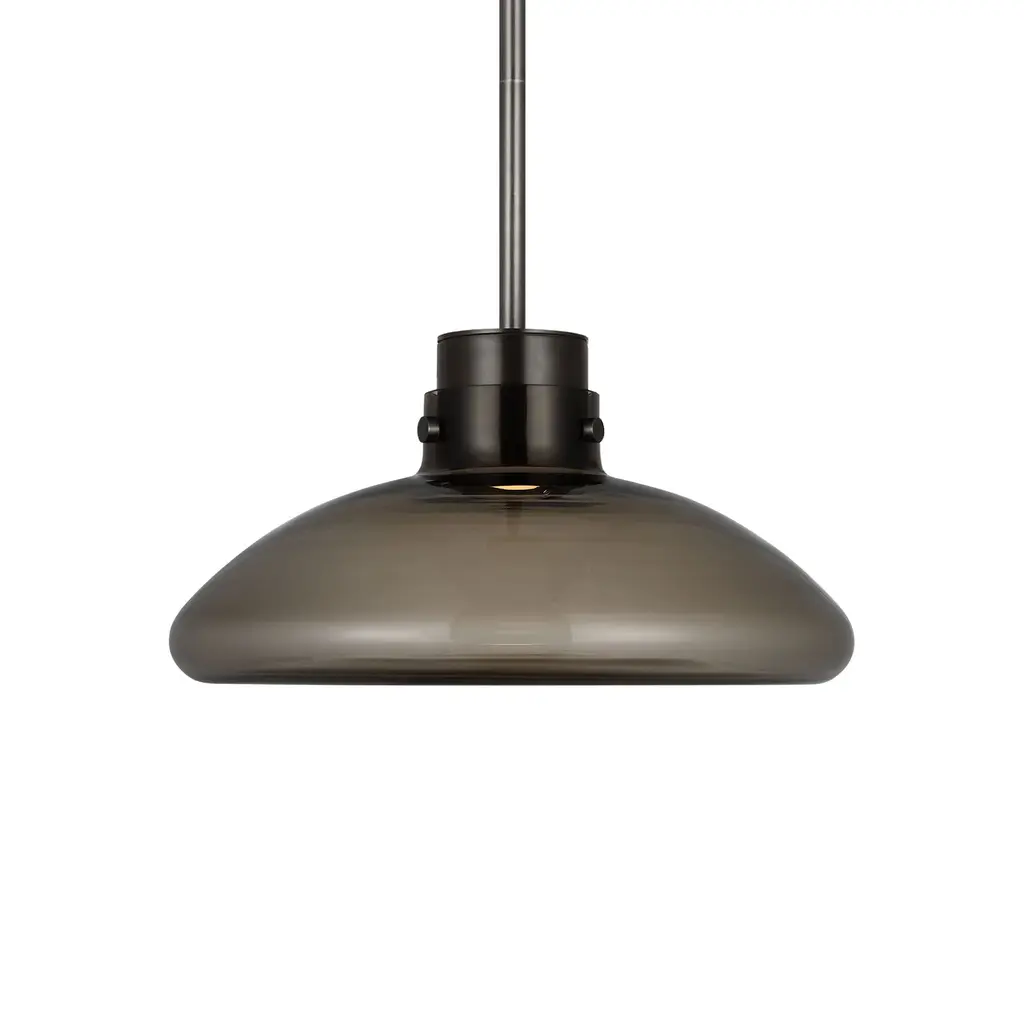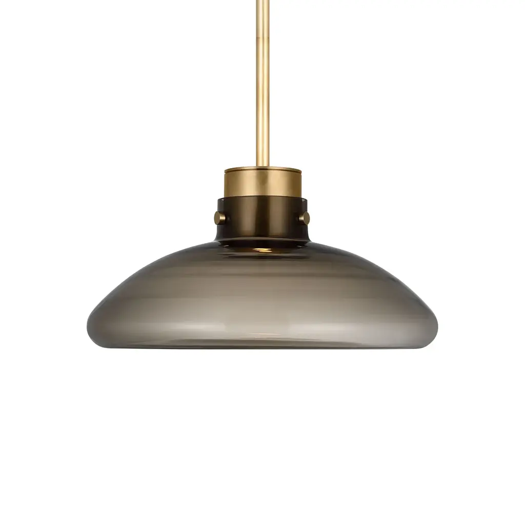 Indulge in the sophisticated elegance of the Avroko Morgan Pendant Light from Visual Comfort & Co. This mid-century modern design, available in four sizes, features a minimalist and contemporary style. The clear or smoked Italian glass is accented by hand-rubbed antique brass or bronze finishes. Inspired by iconic designers, this light adds a refined touch while diffusing soft, gentle illumination throughout any interior space. Highlights