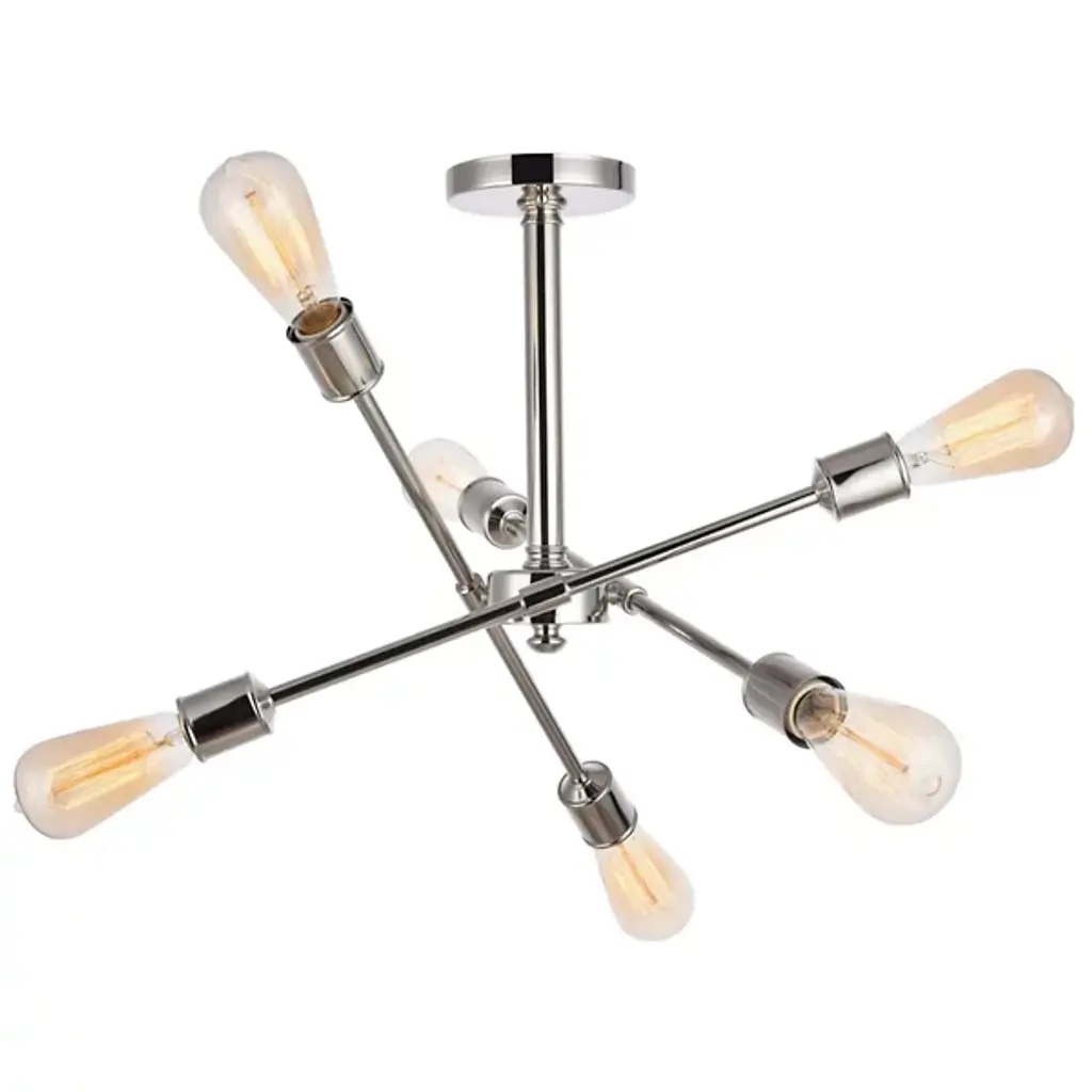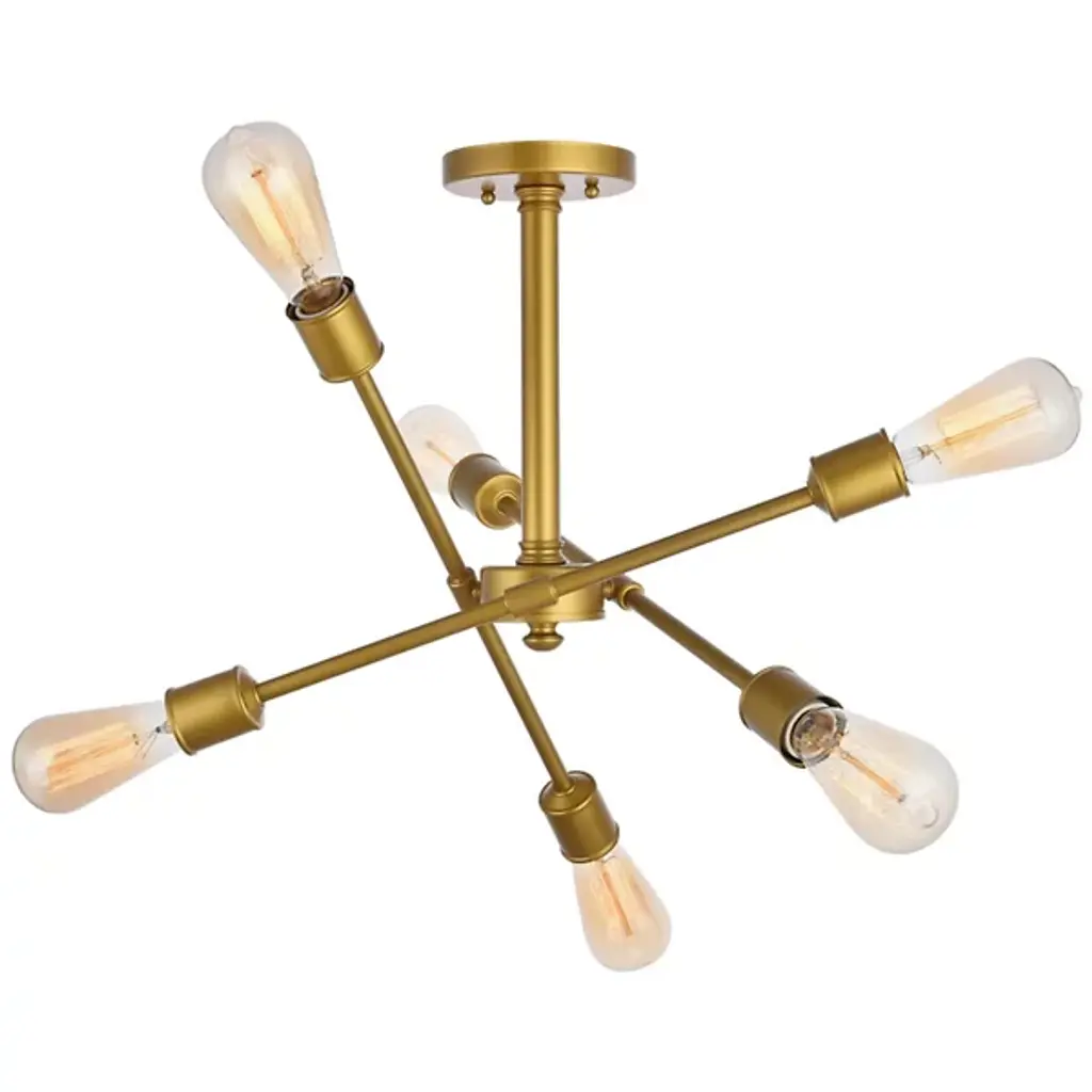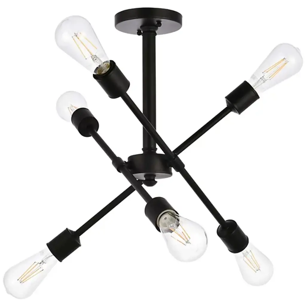 The Axel Semi-Flushmount from Elegant Lighting features three adjustable arms that intersect and extend from a central circular mount, creating a dynamic profile. Each arm terminates in an exposed bulb socket, embracing a raw, minimalist approach that lets the light sources take center stage. The absence of shades allows for unobstructed illumination. With its versatile adjustability, the Axel Semi-Flushmount adapts effortlessly to various room layouts and lighting needs.
