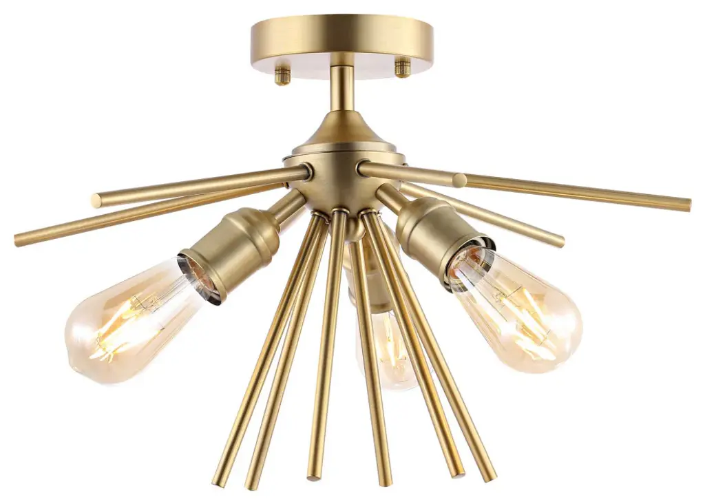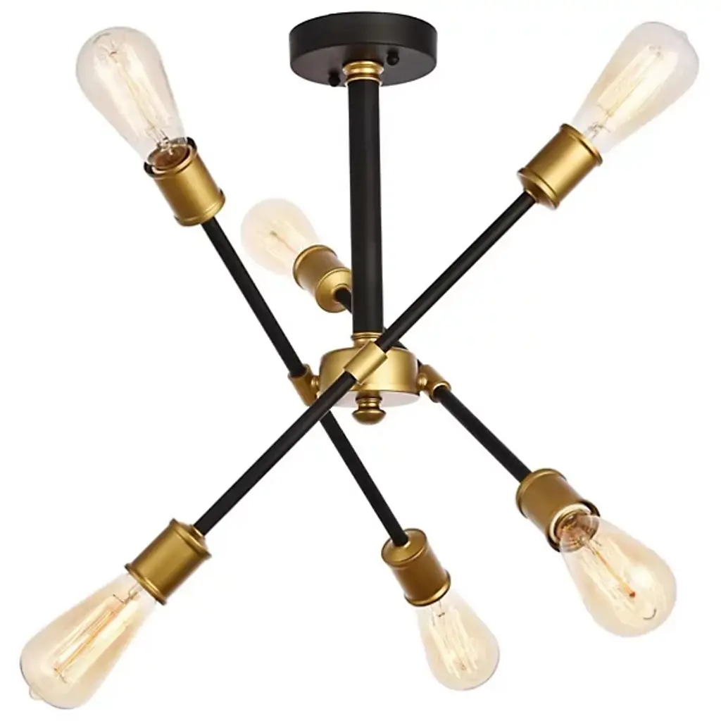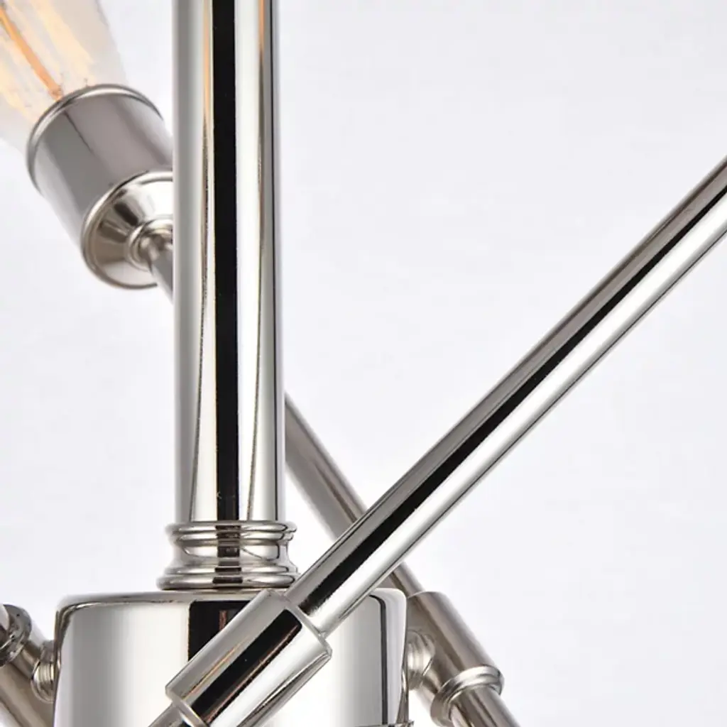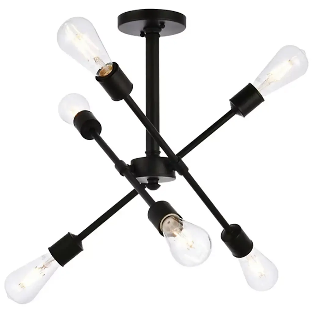 The Axel Semi-Flushmount from Elegant Lighting features three adjustable arms that intersect and extend from a central circular mount, creating a dynamic profile. Each arm terminates in an exposed bulb socket, embracing a raw, minimalist approach that lets the light sources take center stage. The absence of shades allows for unobstructed illumination. With its versatile adjustability, the Axel Semi-Flushmount adapts effortlessly to various room layouts and lighting needs.