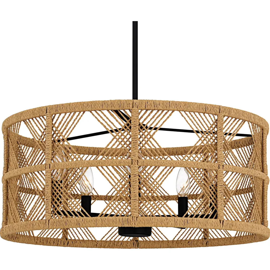 Introducing the Axford collection, where modern design meets natural charm. This collection features a distinctive rope shade that infuses warmth and texture into any space, while the sleek metal frame introduces an element of industrial chic. Choose from two elegant finishes: antique nickel with a black rope shade for a striking contrast, or matte black with a natural rope shade for a more earthy, sophisticated look. Axford is available as a drum pendant or semi-flush mount light.