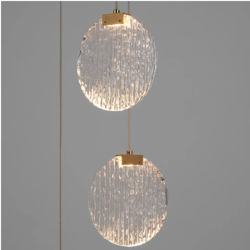 Textured ice acrylic diffuser are emphasized by sleek black or aged brass finishes in the Axiom series of CCT LED lighting. Whether cascading from a round canopy or fixed to a rectangular backplate, each configuration enhances the look of the already attractive clear glass diffusers. Add geometric tones to your commercial or residential project with the Axiom series of wall-mounted and hanging fixtures.