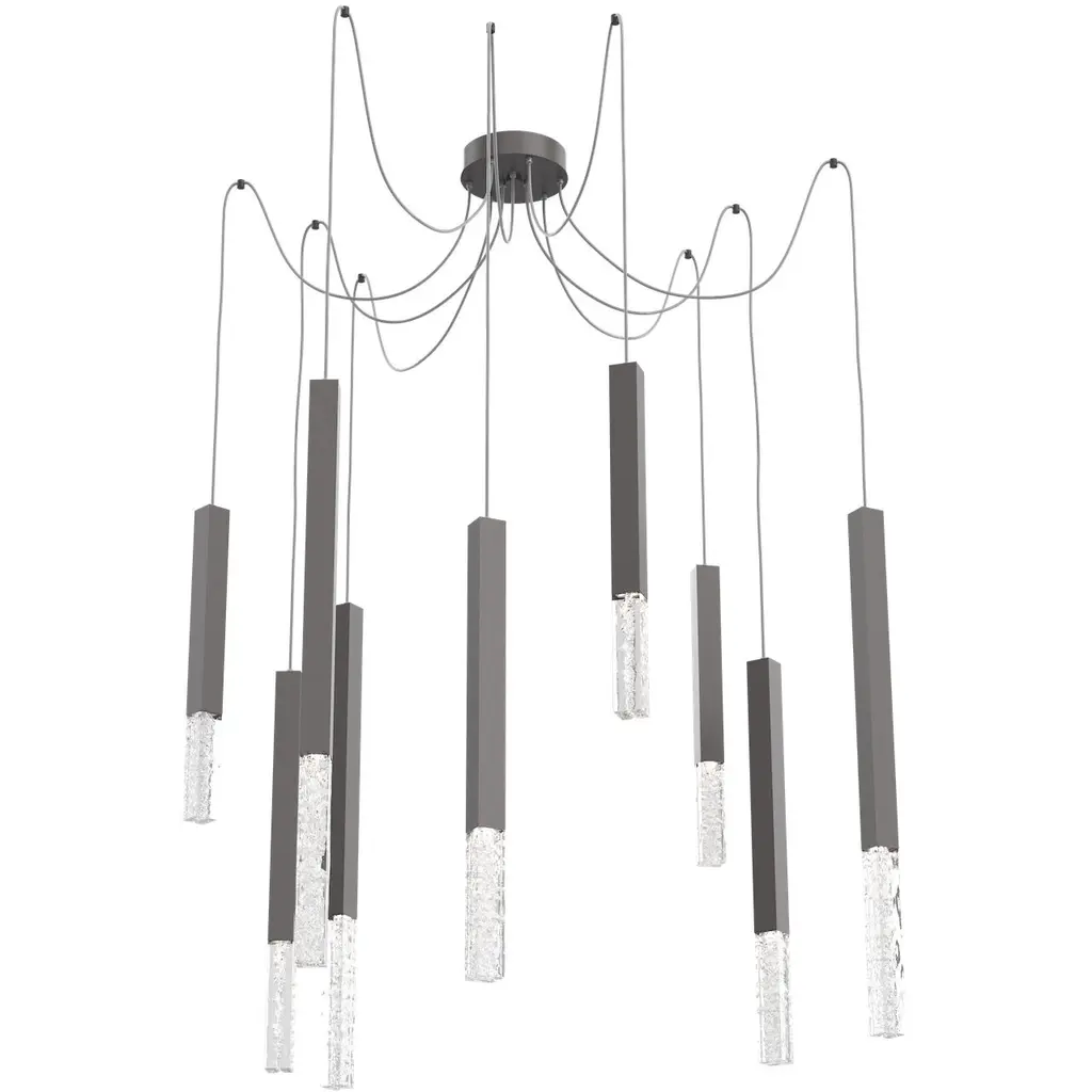 Featuring our standard 22H Axis pendants, this versatile chandelier style enables customization of the placement and height of each pendant. Integrated LED illuminates each artisan cast rod, brilliantly crafted from recycled crystal glass by Hammerton artisans.