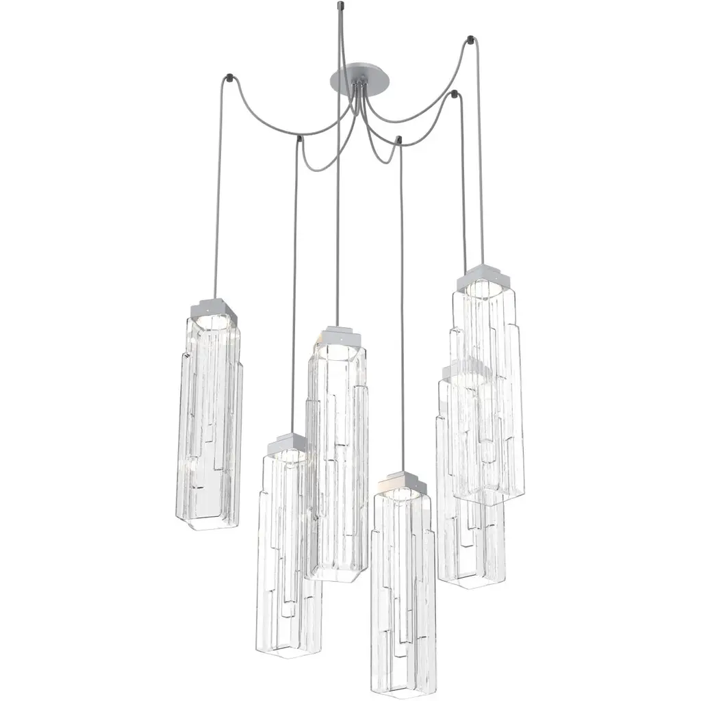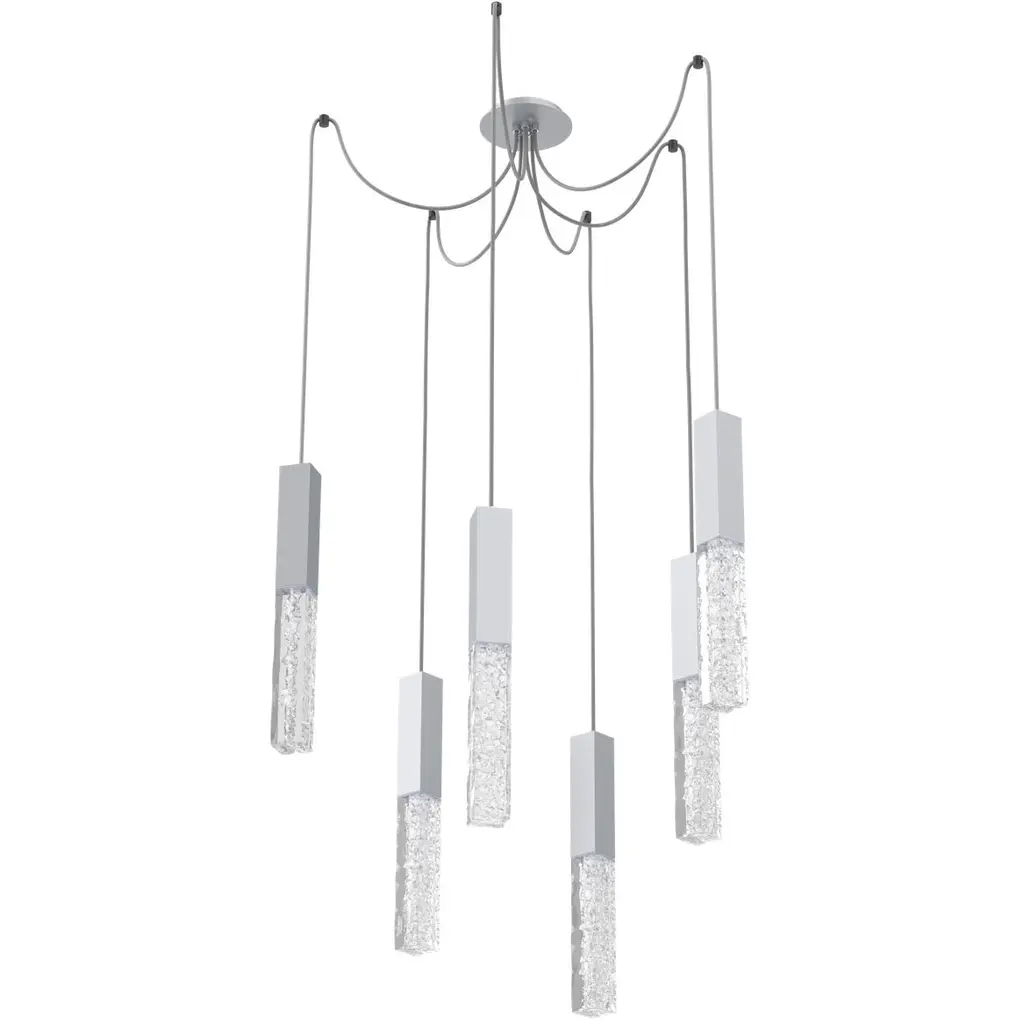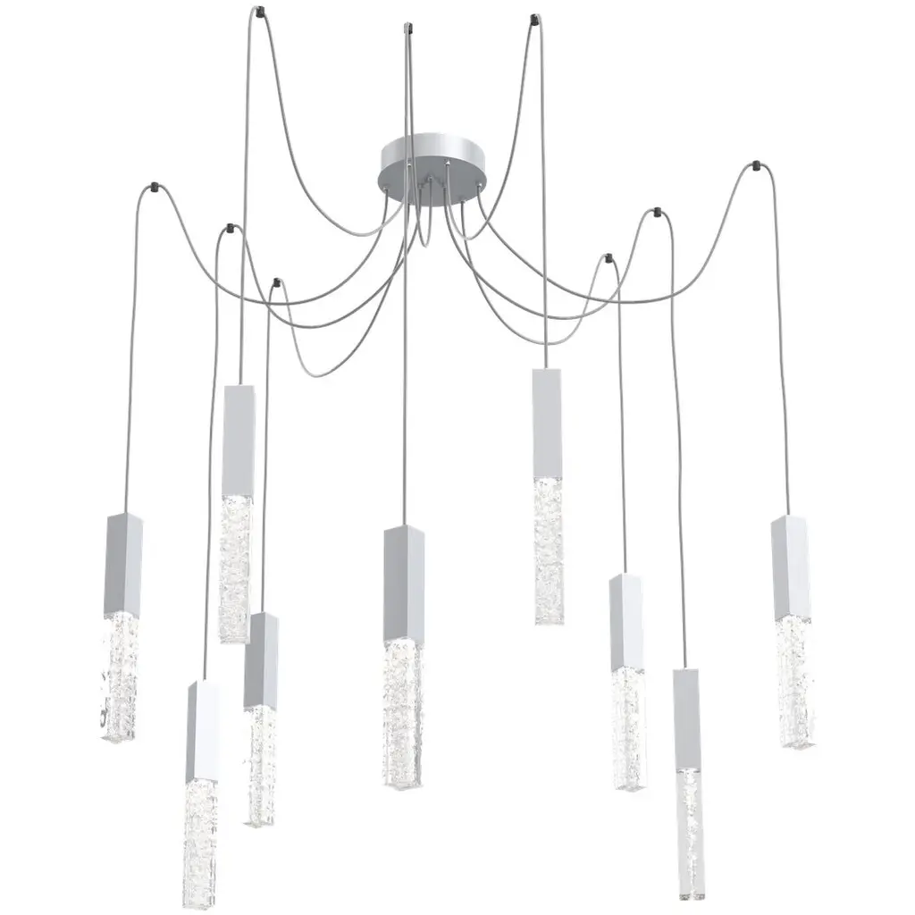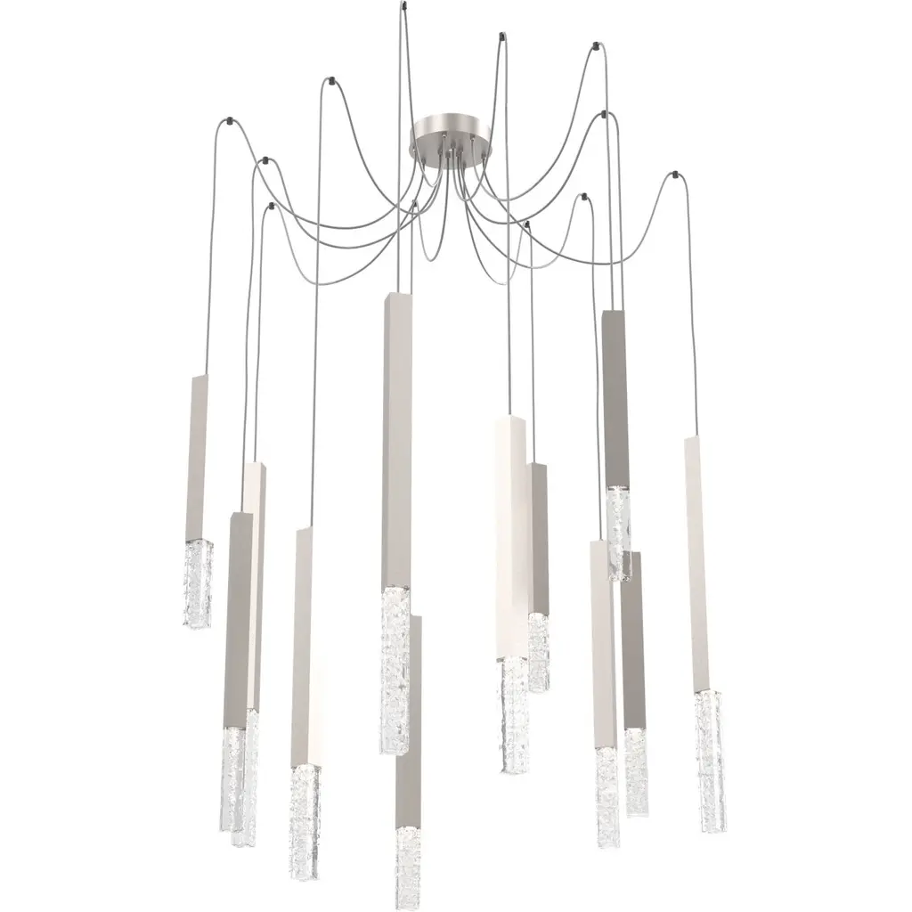 Featuring our standard 22H Axis pendants, this versatile chandelier style enables customization of the placement and height of each pendant. Integrated LED illuminates each artisan cast rod, brilliantly crafted from recycled crystal glass by Hammerton artisans.