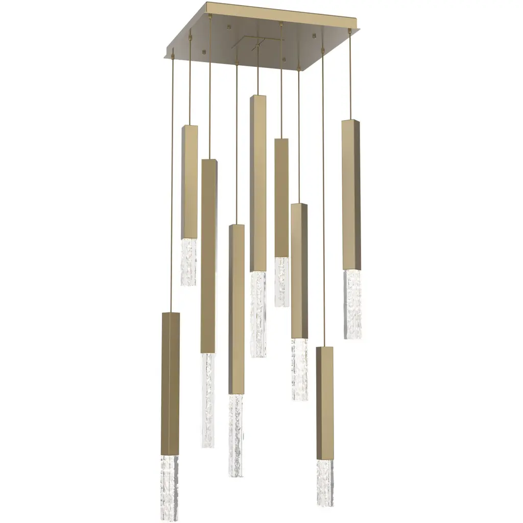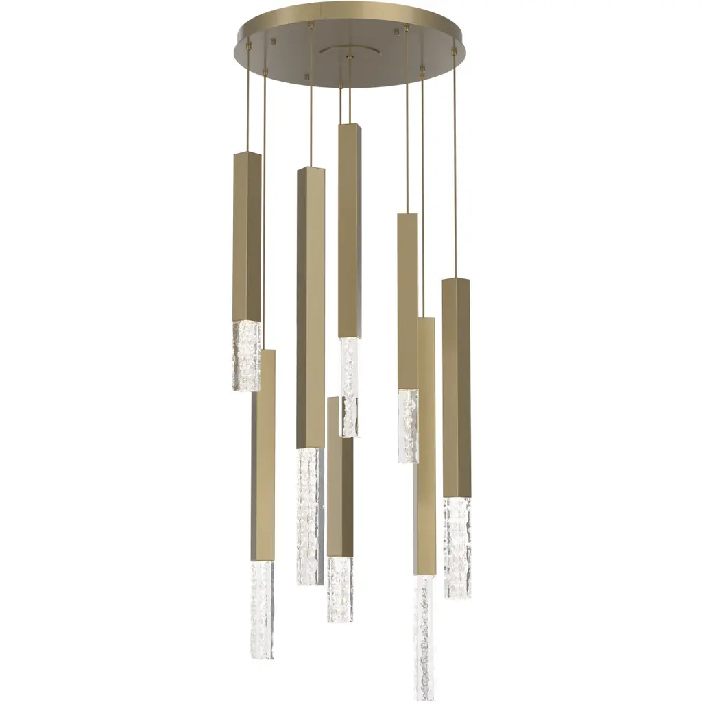 Featuring a standard configuration of our oversized 24, 32 and 40 Axis pendants, this versatile chandelier style enables customization of the placement and height of each pendant. Integrated LED illuminates each artisan cast rod, brilliantly crafted from recycled crystal glass by Hammerton artisans.