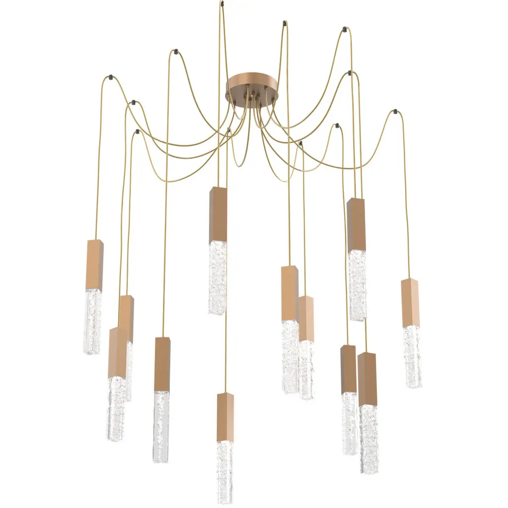 Featuring a standard configuration of our oversized 24, 32 and 40 Axis pendants, this versatile chandelier style enables customization of the placement and height of each pendant. Integrated LED illuminates each artisan cast rod, brilliantly crafted from recycled crystal glass by Hammerton artisans.