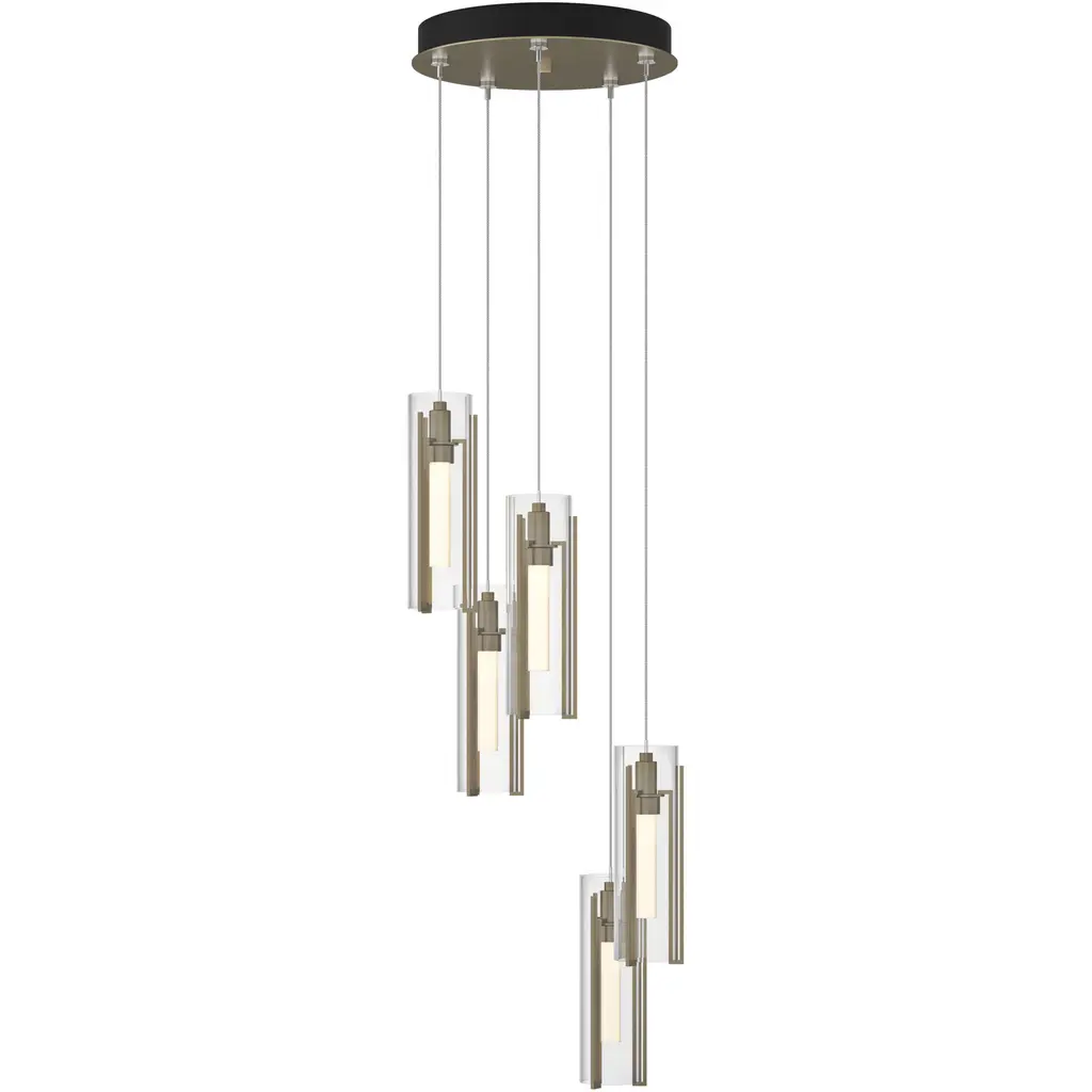 The winter-themed lines of Hammerton Studio’s Axis Round Multi-Light LED Pendant by the talented Levi Wilson are ideal for contemporary or minimalist décor, particularly when suspended from a high ceiling. A series of angular, split-featured pendants descend on thin cables from a round canopy, each top part in hand-polished angular metal, with the bottom a softer prism of artisan glass. Shaped out of extra material left over from other glassblowing at Hammerton, each pendant diffuser is unique, creating a singular light and shadow fusion when lit.