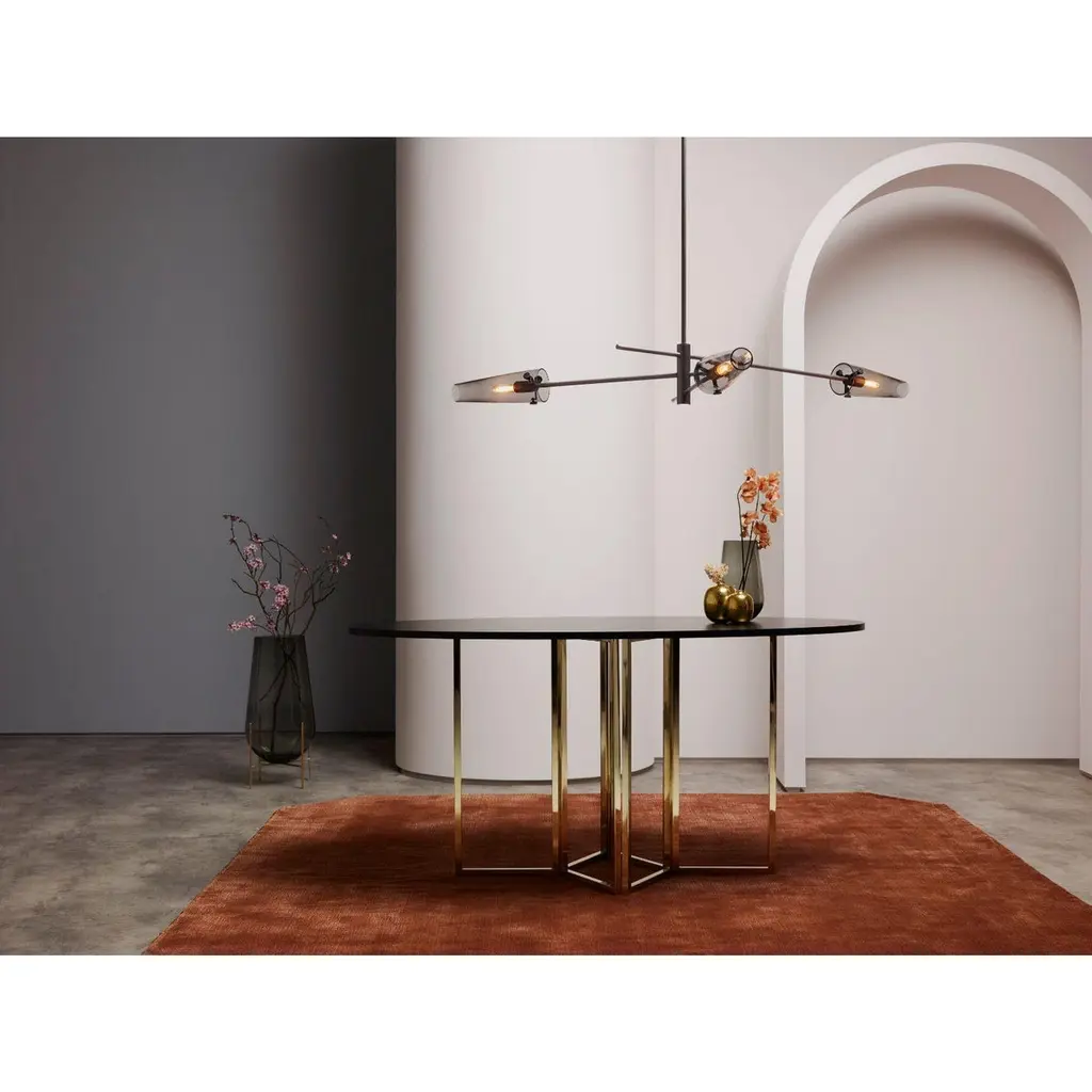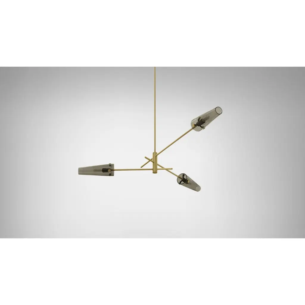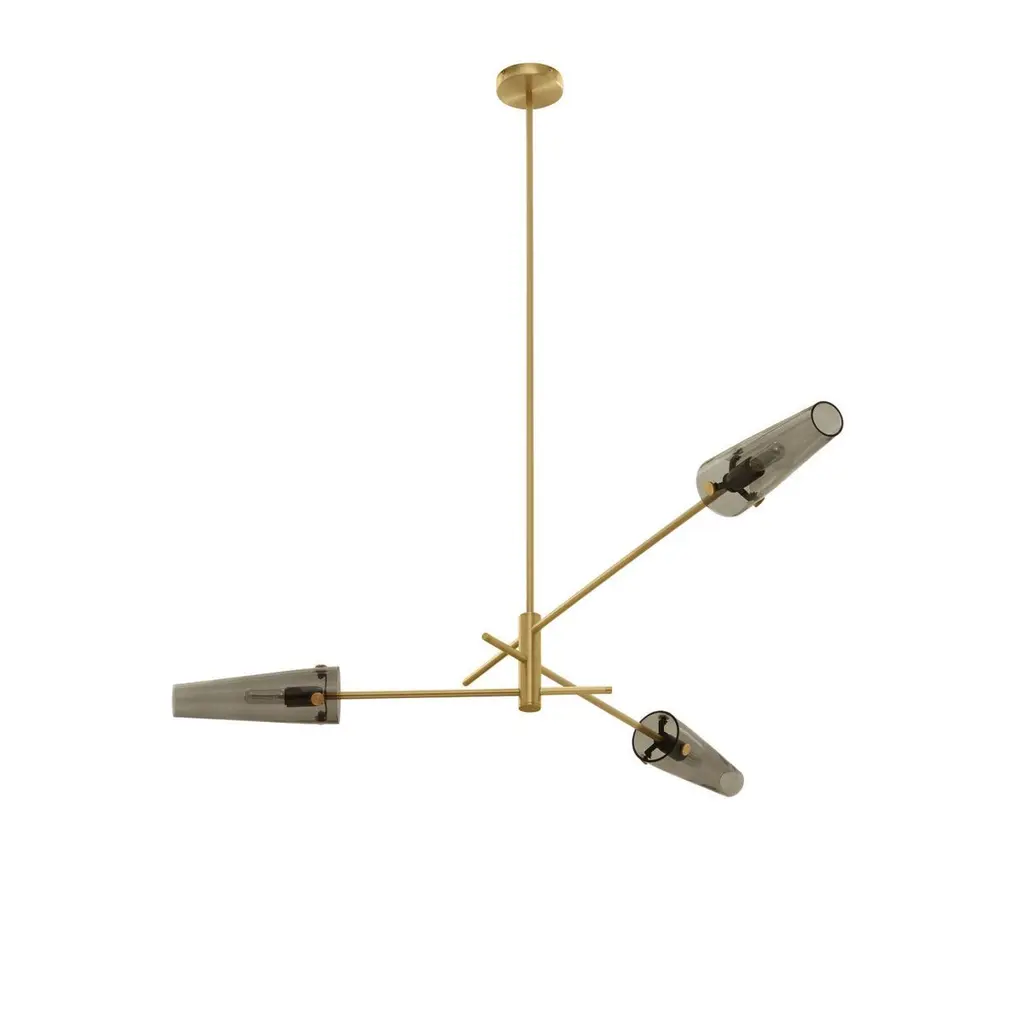 Axis three pendant lamp by CTO LightingMaterials: Satin brass or dark Bronze with smoked glass shadesDimensions: 121 x H min 24 cm All our lamps can be wired according to each country. If sold to the USA it will be wired for the USA for instance.Other finishes and sizes are available.3 x E12, 25w max (or 4.5w LED 2700k)weight 9kg (19.8lbs)supplied with 1000mm (39.4”) drop rod as standard (adjustable on site)additional drop rod at $190 per 1000mmfor installation a minimum drop rod of 50mm (2”) is required, maximum 3000mmno bulbs suppliedmounts onto 4” junction boxFounded in 1998 by Chris and Clare Turner, CTO Lighting launched their first collection on the guiding principles of designing lights of uncompromising quality, using only the finest materials and working with elite British craftsmen. This collection of lighting symbolised elegance and the excellence of British design and manufacturing; the benchmark for all future collections.