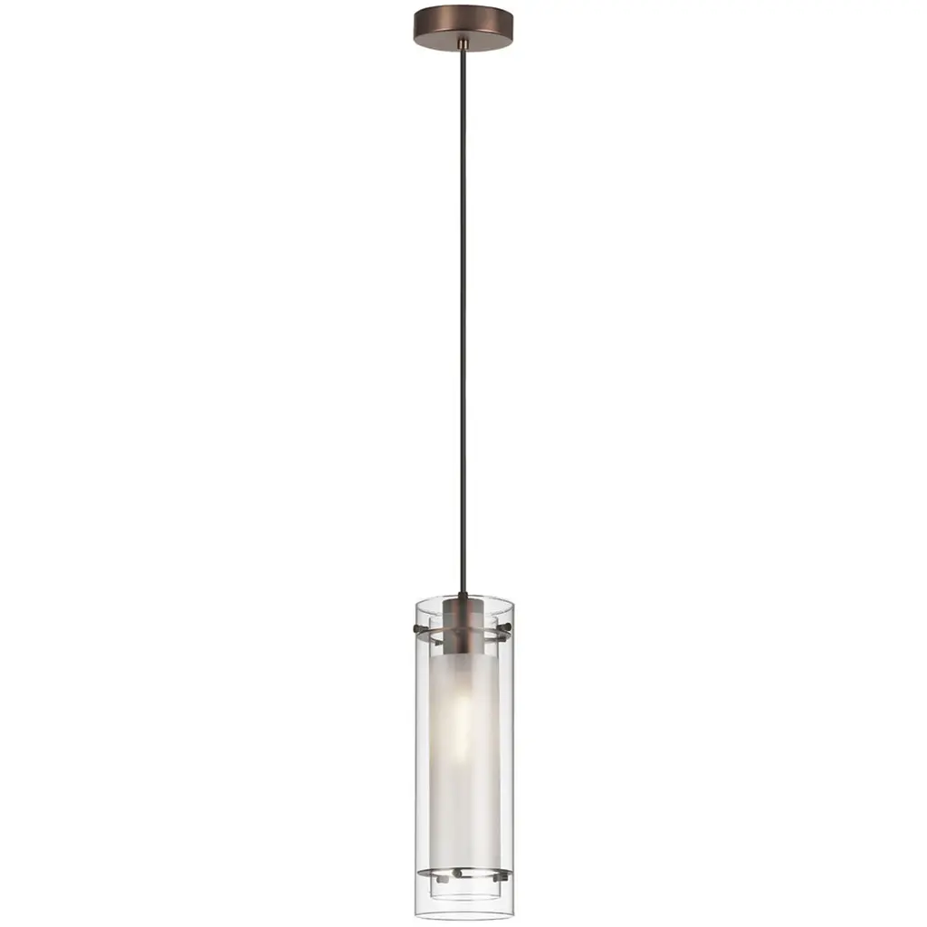 Axis XL 10" Pendant - Burnished Bronze - Burnished Bronze - Geo Inner - Clear Outer - Cloth Braided Cord - LED - 2700K