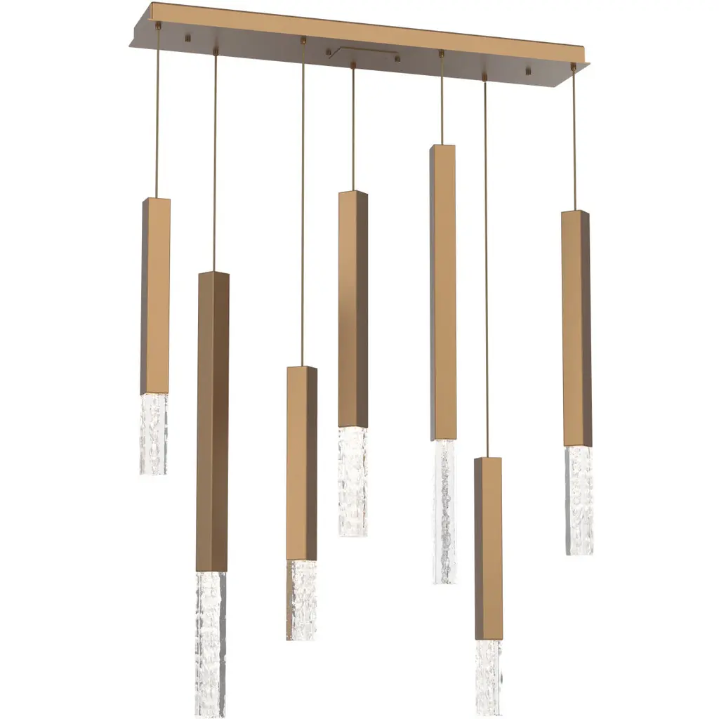 Axis XL 7pc Linear Multi - Pendant - Classic Silver - Geo Inner - Clear Outer - Cloth Braided Cord - LED - 2700K