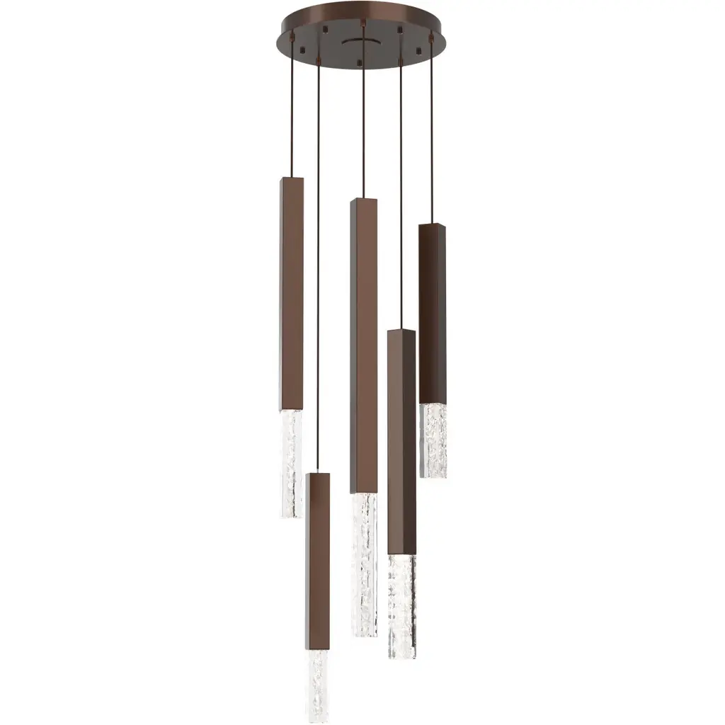 Axis XL 5pc Multi - Pendant - Flat Bronze - Geo Inner - Clear Outer - Cloth Braided Cord - LED - 3000K