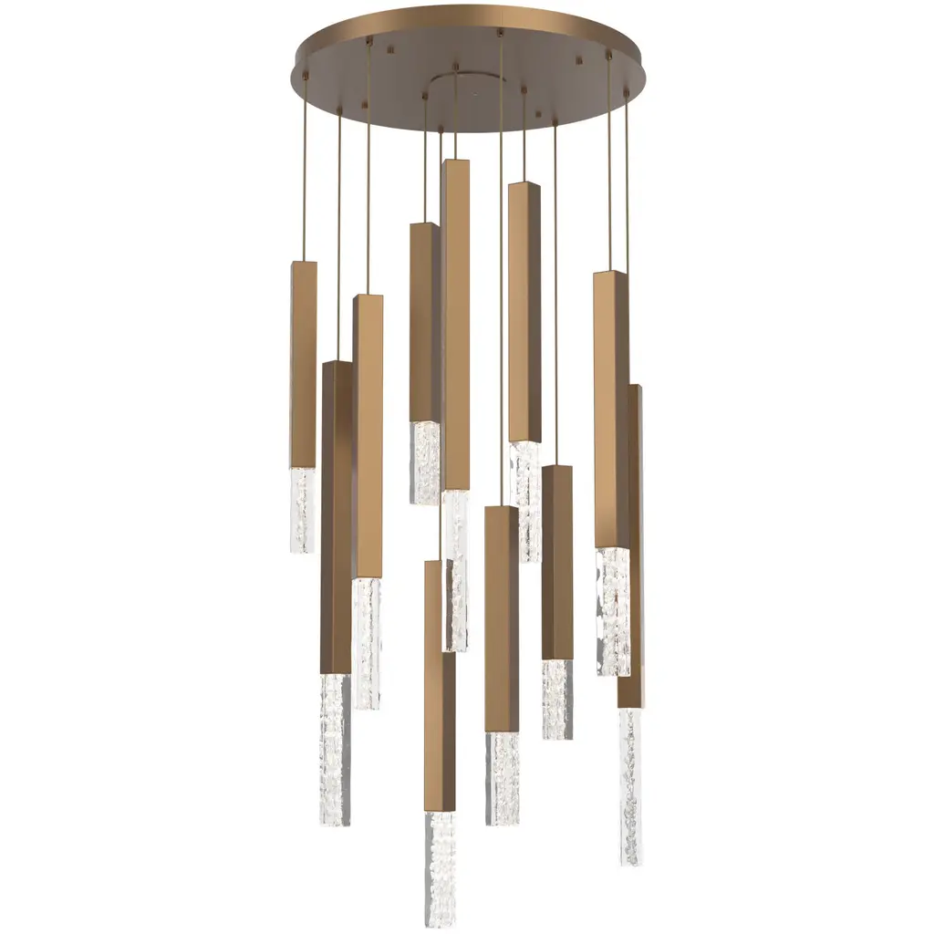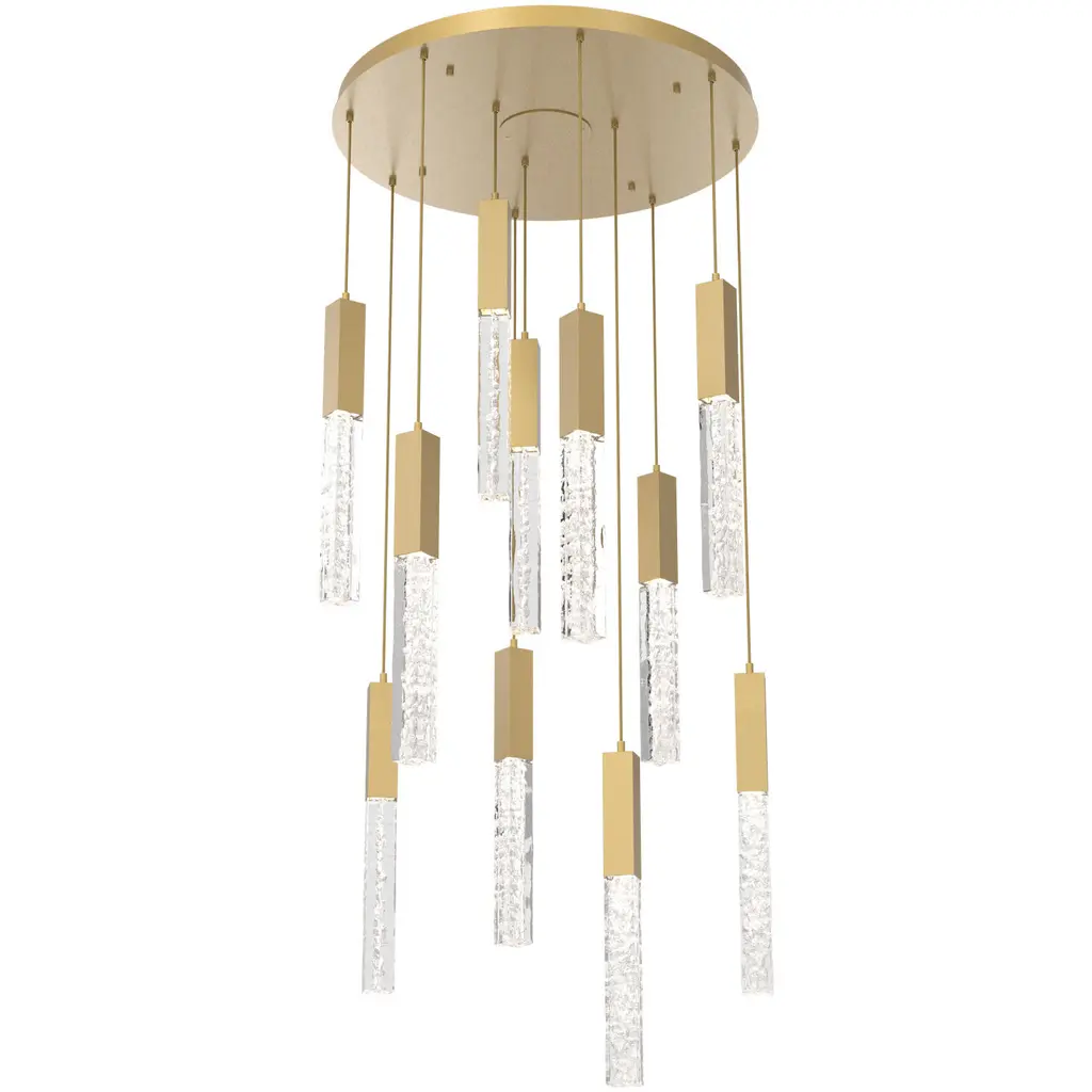 Axis XL 11pc Multi - Pendant - Gilded Brass - Geo Inner - Clear Outer - Cloth Braided Cord - LED - 2700K