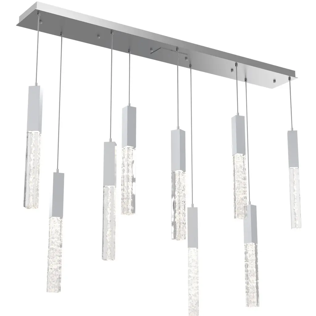 Axis XL 9pc Linear Multi - Pendant - Metallic Beige Silver - Geo Inner - Clear Outer - Cloth Braided Cord - LED - 2700K