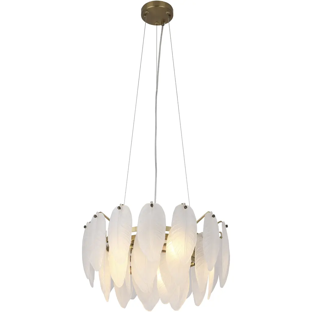 This collection is inspired by the craftsmanship of fine jewelry, runway fashion trends, and the beauty of nature itself. Its name is short for Azucena, a "Madonna Lily" in Spanish. This white gesso pendant features a flirtatious interplay of crystal wi