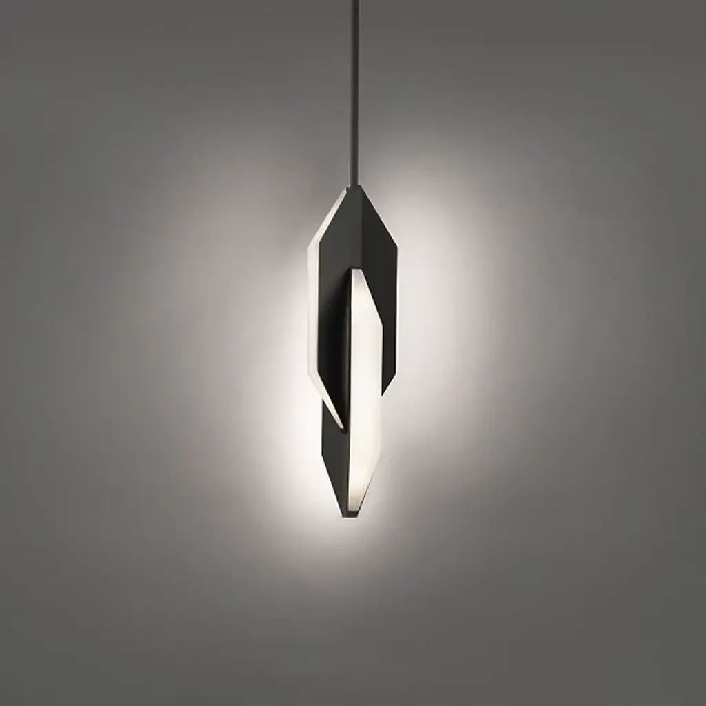 The Azure LED Mini Pendant from Modern Forms combines form and function with panels of dimensional Spanish alabaster encased in luminous metal, creating a breathtaking visual impact. Each piece is a unique work of art, highlighting the alabaster's natural beauty and gentle translucence. The extruded aluminum body pairs seamlessly with the alabaster shade, providing a timeless, warm lighting experience. Included are six 12-inch and two 6-inch down rods, making it compatible with sloped ceilings and versatile for various installations.