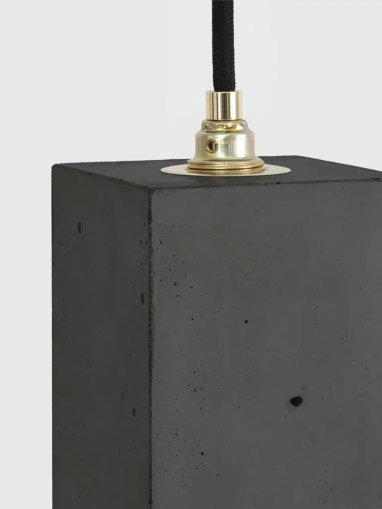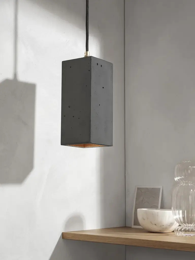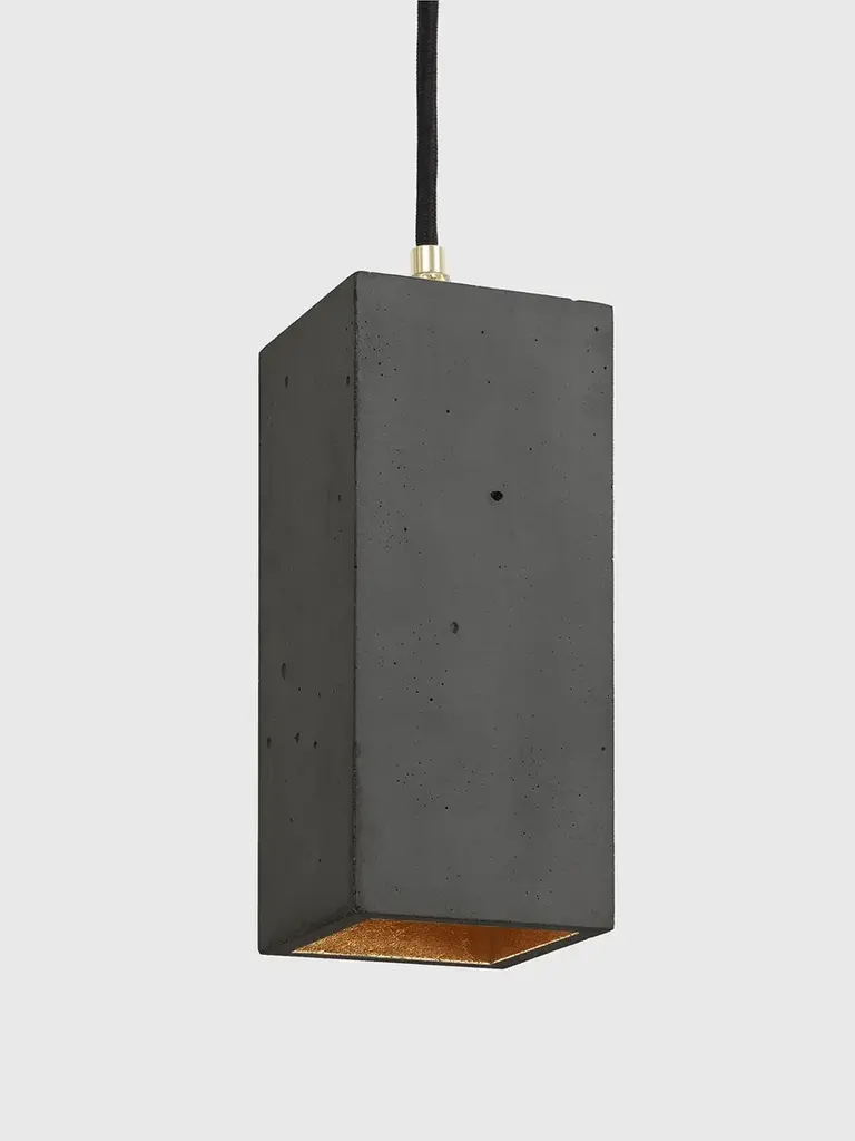 [B2] dark Pendant Light Rectangular - dark grey concrete with gold, silver or copper plating on the inside - handmade by GANTlights in Berlin.The lamp can be used solitary as an "eye-catcher" or combined in a series above a dining table, a sideboard, a desk, or a bar for example. Due to its minimalistic design and the contrasting materials, the lamp is modern and timeless at the same time and can therefore be combined with any style.Included: The handmade lamp shade is delivered ready to install with an E14 brass mount, cable restraints, 1.8m / 3m / 5m of black / white / grey textile cable, mounting hardware and black canopy.Watts / beam angle: 40W / 35°The lamp requires an E14 bulb (please note that the bulb is not included).