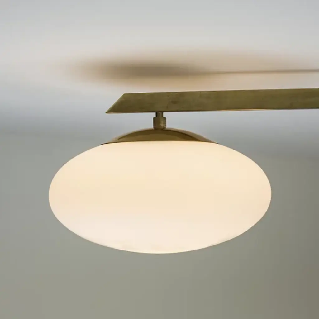 Give your living space a modern artisanal look with the Baby Wall/Semi-Flushmount by Design For Macha. A rounded shade of opaline glass is properly secured by a brass frame boasting a cylindrical base. This meticulously designed fixture can be displayed vertically or horizontally, making it versatile and well-suited for a variety of indoor settings. An incandescent bulb rests within this furnishment’s shade, letting bright light emanate throughout your environment. Design For Macha has a rich history in the tradition of Italian design dating back to the 20th century.