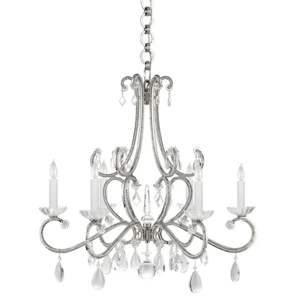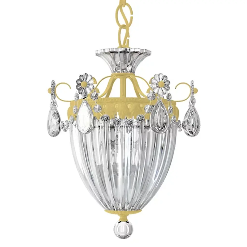 The Schonbek Lighting Bagatelle Pendant reinterprets classic lantern motifs with delicate, sparkling detail. Numerous hand-crafted Heritage Handcut crystals trim the fluted glass shade. The metal frame features complementary curves and is available in a variety of finishes to coordinate seamlessly with any traditional color scheme.