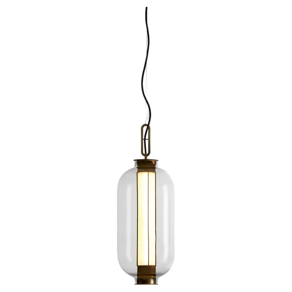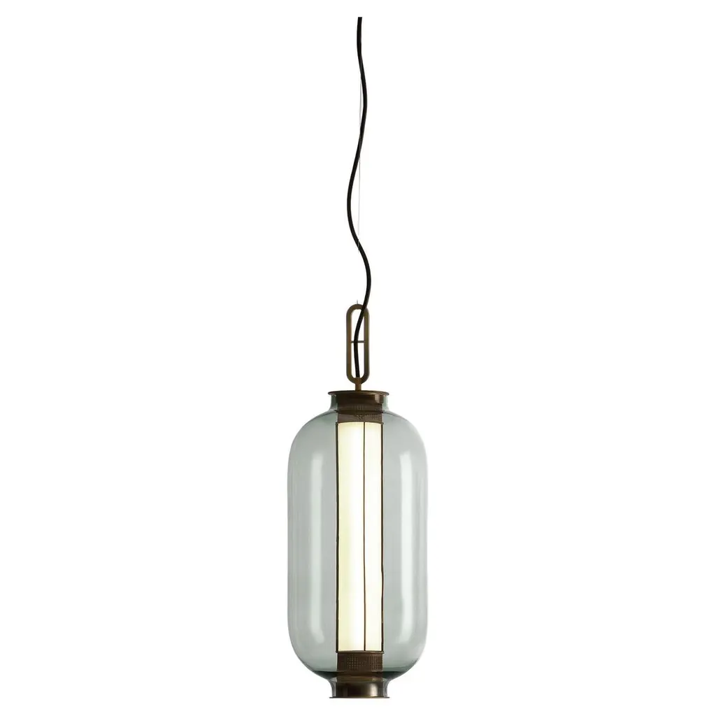A sleek and beautiful modern design, the Bai T Ba Ba LED Cylindrical Pendant from Parachilna elevates the décor of the home as it pays homage to traditional Chinese lanterns. Designed by Shanghai studio Neri & Hu in 2014, the piece strikes a balance between modern and traditional with a clear, oval-shaped glass shade that gently encloses upon a long and slim lantern. An integrated LED rests within the lantern, sending out a peaceful, even glow that flows into the home.
