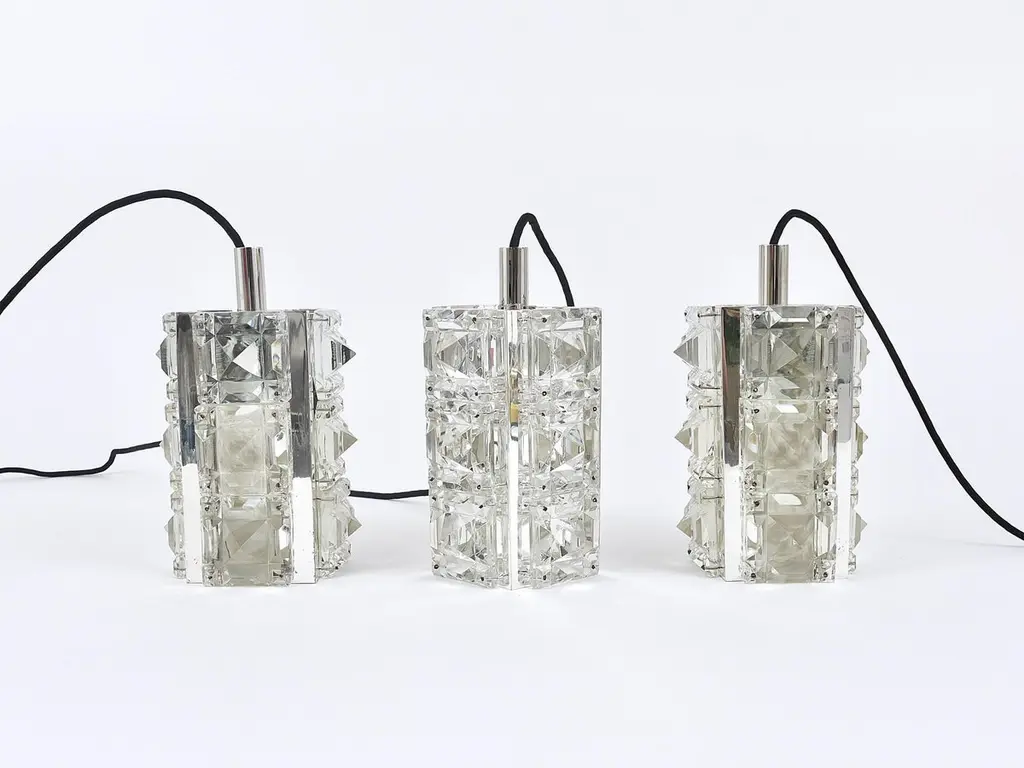 Bakalowits Vienna, Up To Three Faceted Crystal Pendant Lamps, Austria, 1960s