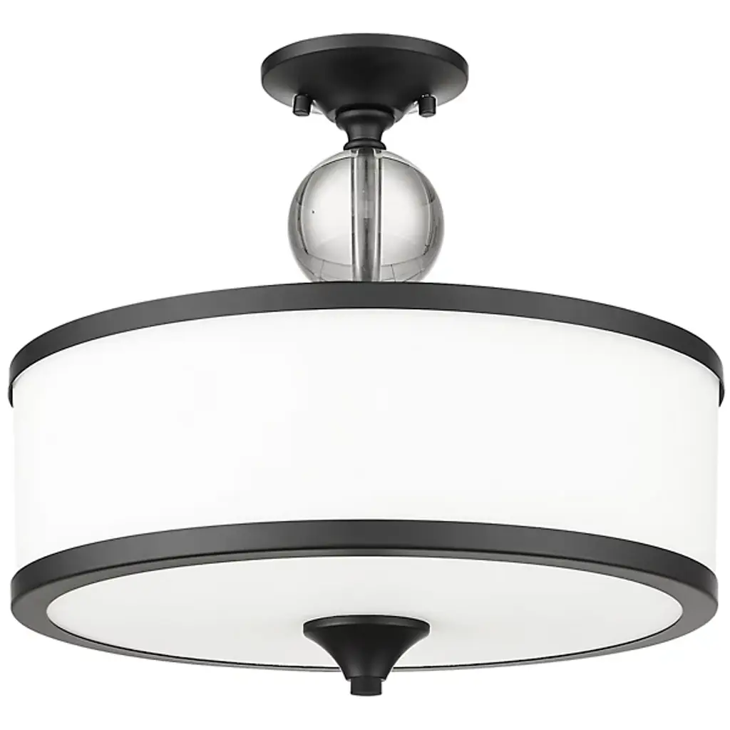 Elevate your space with the Baker Semi-Flushmount from Alder & Ore, which combines modern design with a touch of romantic charm. The fixture features a deep etched milk-white shade adorned with bands and a complementary contemporary finial, creating an artisanal effect that adds style and sophistication. Whether you place it in a custom dining space, hallway, or main living area, this light will cast a warm and inviting glow while making a tasteful statement in your decor.