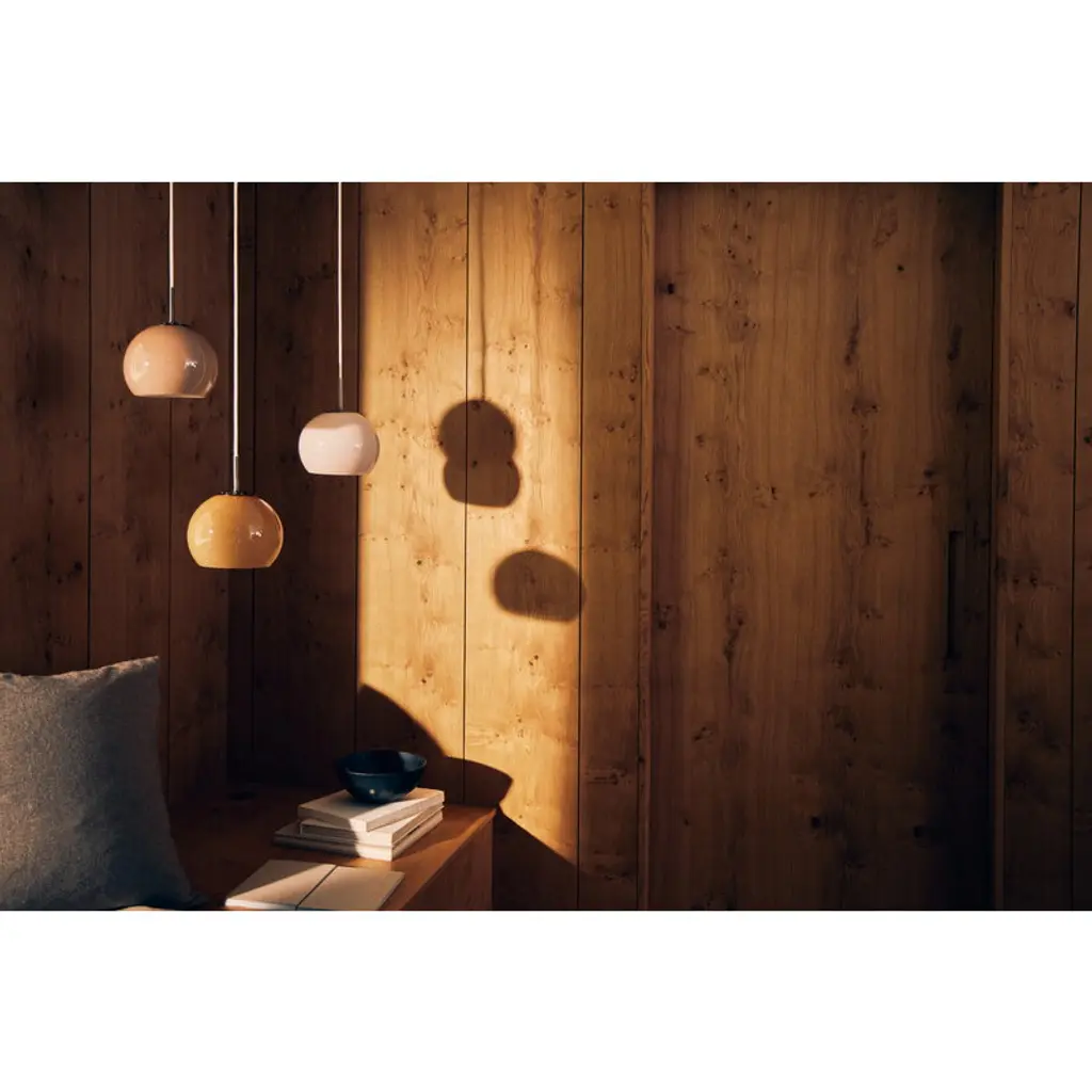 Frandsen's Ball Glass pendant represents Danish functional design at its finest, with a splash of vintage flair. Benny Frandsen's masterful interpretation of the classic round ceiling lamp takes you straight back to the 1960s with its minimalist shape and retro-inspired hues, which offer the perfect color option for any space. The Ball Glass pendant is ideal for general lighting as well as for hanging above a seating area or dining table – the delicate glass shade makes the luminaire suitable for creating an atmosphere in the bedroom, too.