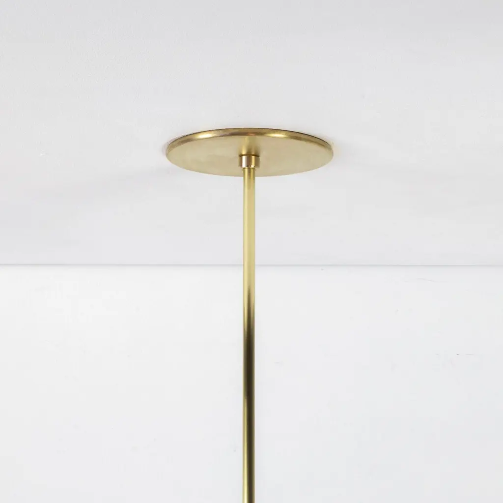 This listing is for 1x Globe Pendant in Brass designed and manufactured by Research.Lighting.Materials: Steel, Brass & GlassFinish: Raw Brass - This will naturally tarnish unless you treat it.Electronics: 1x G9 Socket, 4.5 Watt LED Bulb (included), 450 LumensSuspension: 5" D Brass Canopy, 24" Hard Stem (unless otherwise specified)For no additional cost, we can set the hardstem to be any of the following lengths: 18in, 24in, 30in, 36in. Contact us for longer drop lengths.UL Listed. Made in the USAThe glass globe on this fixture is ~3.125in in diameter.