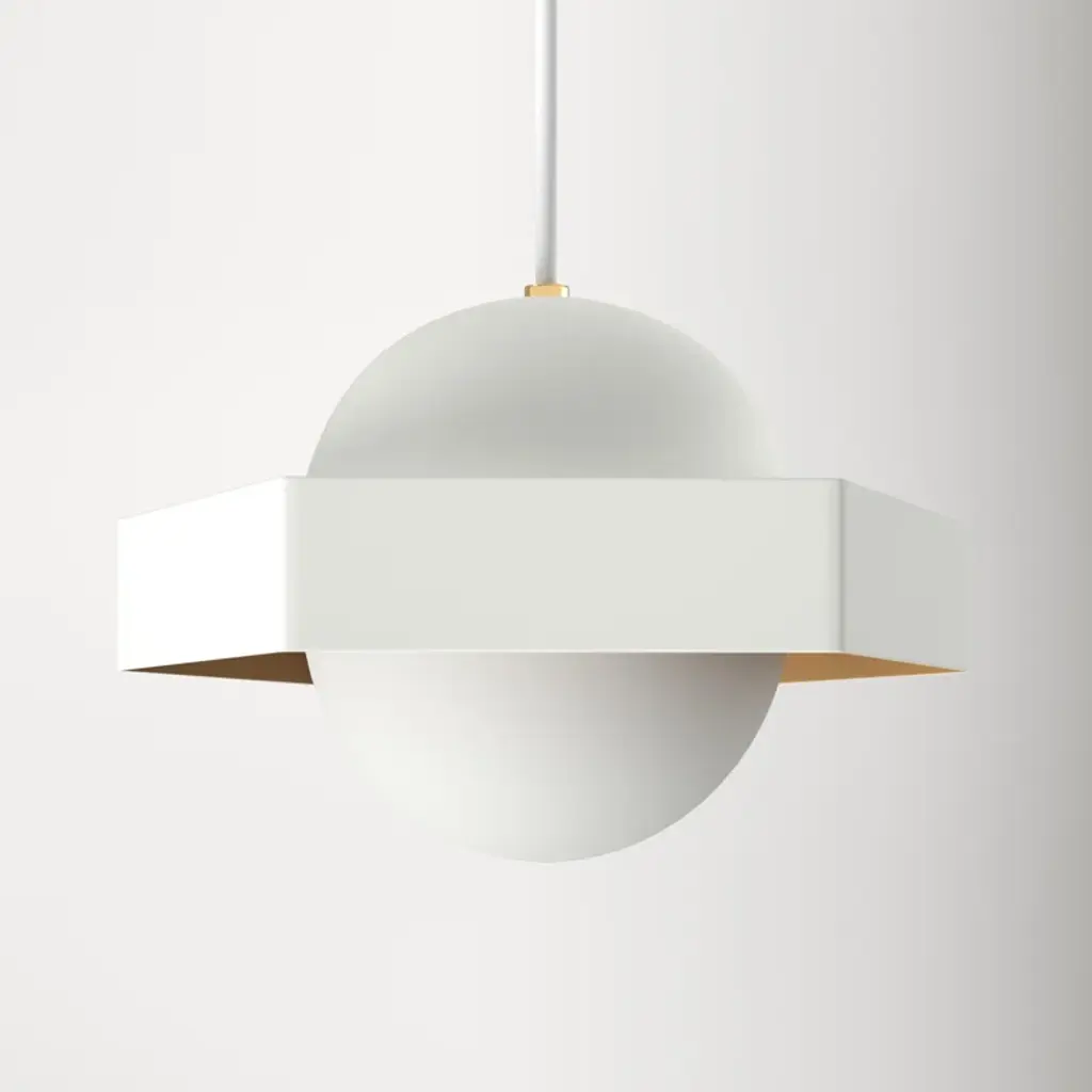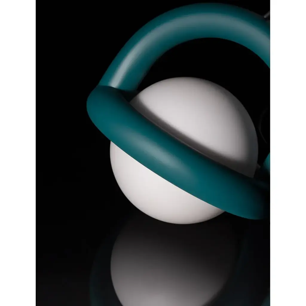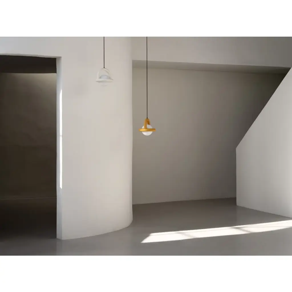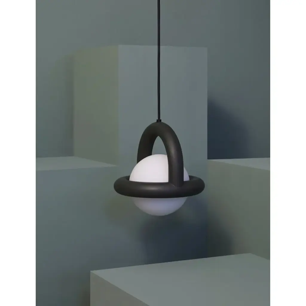AGO's Balloon pendant lamp is a delightful addition above any dining table, in the living room or in the nursery. Its distinctive and graphic silhouette combines a round opal glass shade with a painted steel frame. A matte black cable adds a stylish finishing touch to the luminaire. This updated version of the luminaire features a dimmable, integrated LED module for optimal performance and energy efficiency. Manufactured by the Korean brand AGO and designed by Studio Word, the Balloon collection was inspired by balloon twisting. The Balloon lamps are both fun, sophisticated and minimalist at the same time, making them a perfect addition to various types of environments, either individually or in groups of several lamps.