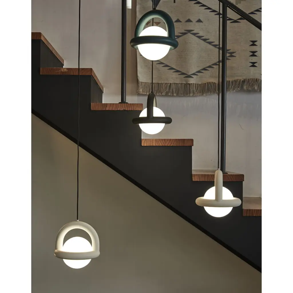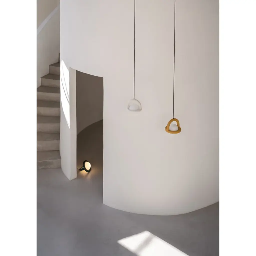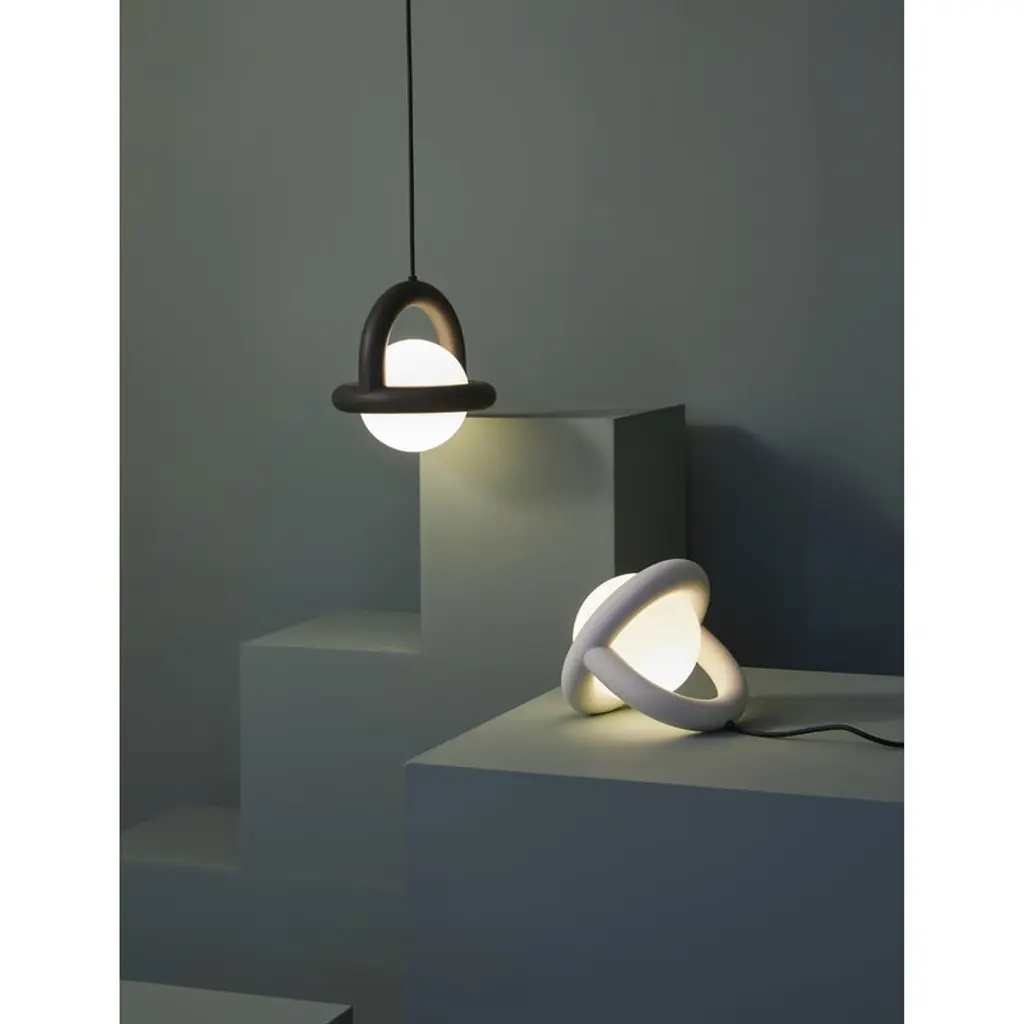 AGO's Balloon pendant lamp is a delightful addition above any dining table, in the living room or in the nursery. Its distinctive and graphic silhouette combines a round opal glass shade with a painted steel frame. A matte black cable adds a stylish finishing touch to the luminaire. This updated version of the luminaire features a dimmable, integrated LED module for optimal performance and energy efficiency. Manufactured by the Korean brand AGO and designed by Studio Word, the Balloon collection was inspired by balloon twisting. The Balloon lamps are both fun, sophisticated and minimalist at the same time, making them a perfect addition to various types of environments, either individually or in groups of several lamps.