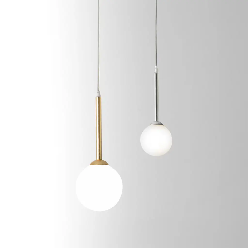 The pendant lamp embodies ethereal elegance with a touch of playfulness. The golden-finished rod culminates with a perfectly round sphere that emits warm, radiant light. This standout piece from Stillux embodies the brand's dedication to excellence and innovation. Best arranged in multiples in a staggered arrangement along a table or living room, transforming the space with a sense of lightness and sophistication.