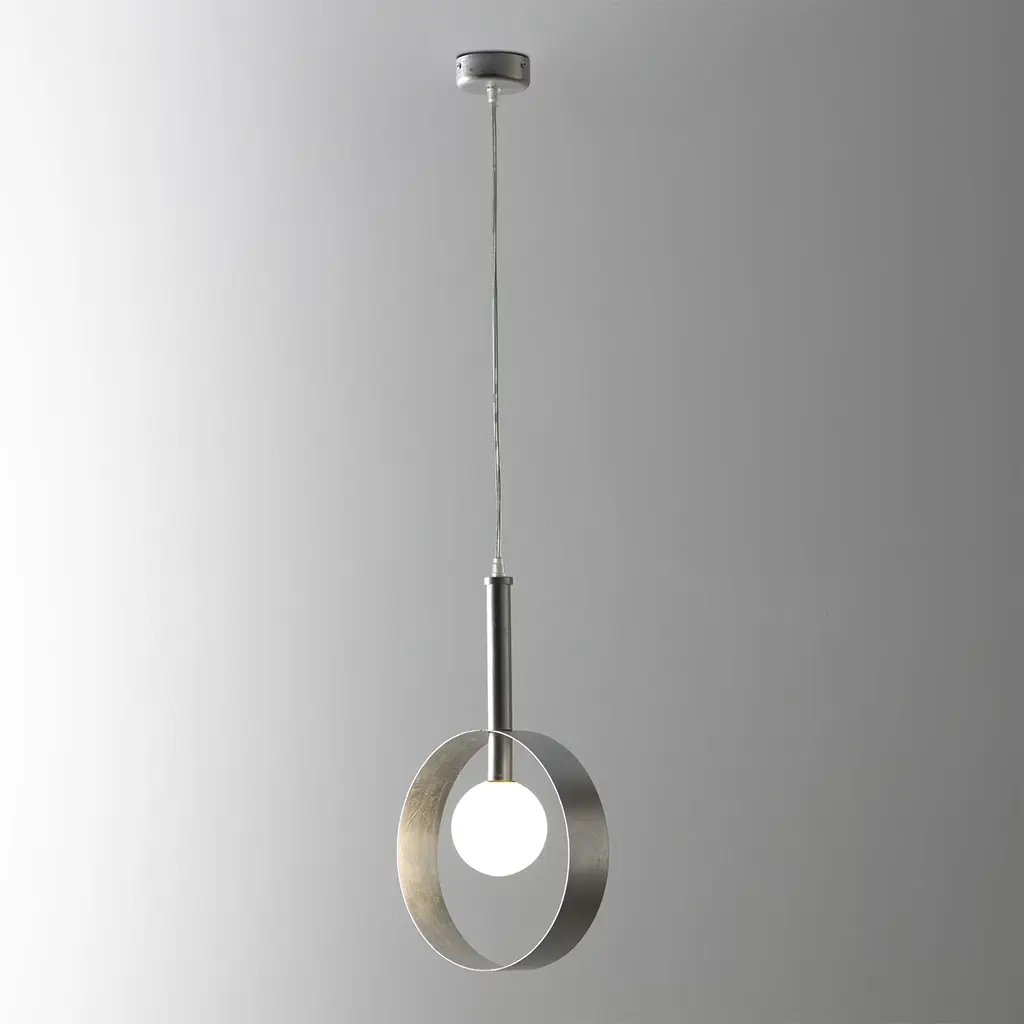 Distinguished by its unique design, this mesmerizing pendant features a central luminous sphere adorned by a surrounding ring reminiscent of an ethereal aura. Crafted with artisanal care, this chandelier emits warm and enveloping light, transforming environments into welcoming scenes. The balanced arrangement of spheres offers a harmonious design, creating captivating plays of shadows and reflections. An ode to timeless elegance, it combines simplicity with extraordinary visual impact.