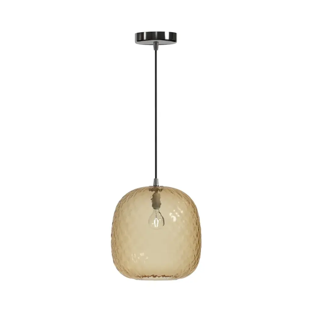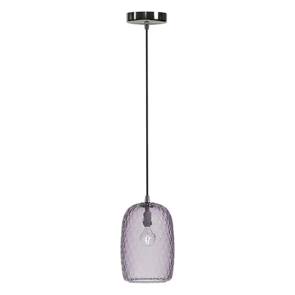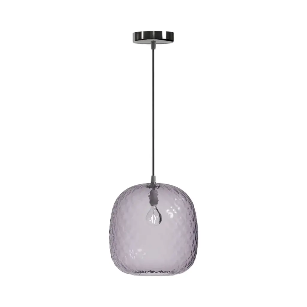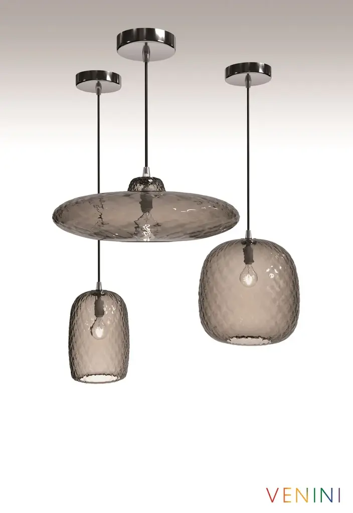 Balloton is a pendant lamp in hand-blown glass with the traditional balloton processing with a metal mold, for a cross relief effect. The latest re-edition features bright new elements, complex shapes and different uses. But it stays true to the Balloton technique, which lends a unique texture – pleasant to the eye and to the touch – to the glass surface: a rhomboid pattern etched with metal by the master glassblowers. The Balloton Lamp is available as a pendant light, a wall light and a table lamp.Colors:IndigoTèGreyLight source:845.05 - 1 X max 8W LED E14845.06 - 1 X max 8W LED E14845.07 - 1 X max 8W LED E14It seems soft, yet it is glass. This signature VENINI optical illusion is called Balloton: a unique process that recreates a quilted effect in glass. The “balloton” forming process is one of the most fascinating in the art of Murano glass making. In the most important phase of the process, the master glass maker has to blow the hot glass inside a special, thick metal mould before it solidifies. The mould creates the rhomboid shapes on the outer surface.