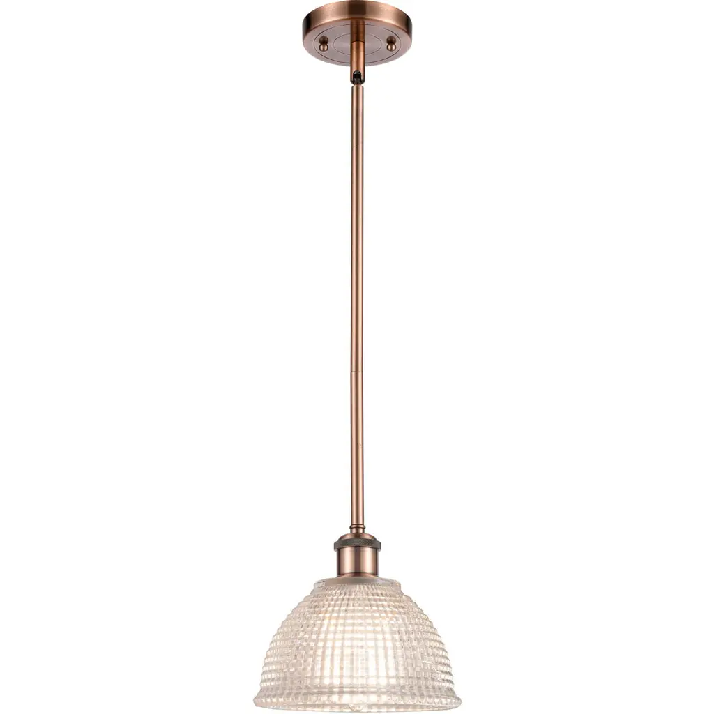 The Arietta 1 Light Pendant is part of the Ballston Collection. Includes 1-6 and 2-12 inch Stems With Solid Brass 90 Degree Hang Straight Swivel for Sloped Ceilings. Solid Brass 90 Degree Hang Straight Swivel for Sloped Ceilings Included