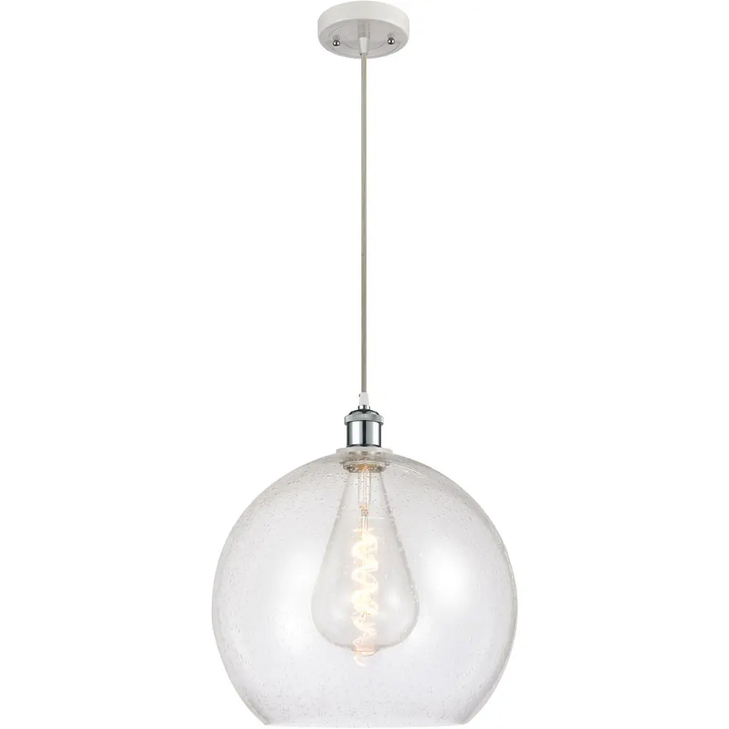 Ballston Athens 1 Light 12 Inch White And Polished Chrome Mini Pendant Ceiling Light In Seedy Glass