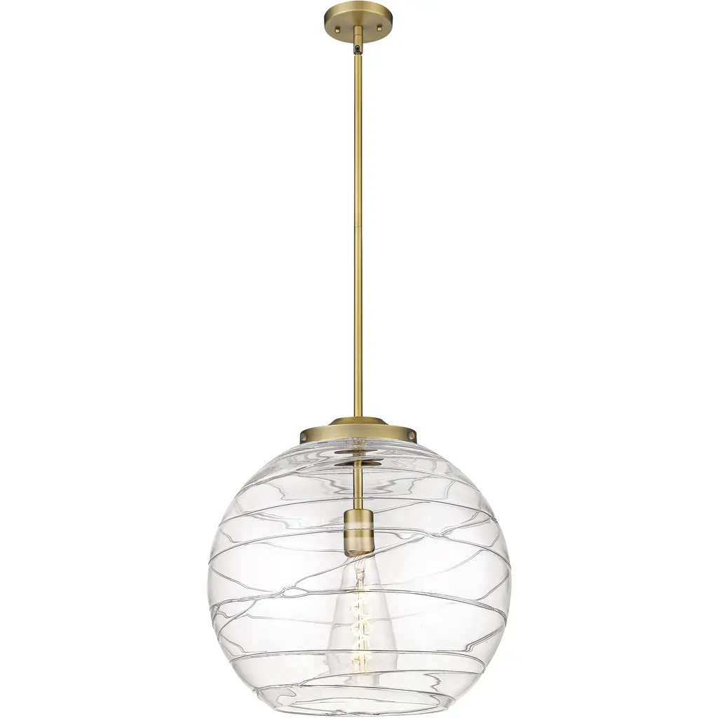Ballston Athens Deco Swirl 1 Light 15.75 Inch Antique Brass Pendant Ceiling Light In Incandescent, Clear Deco Swirl