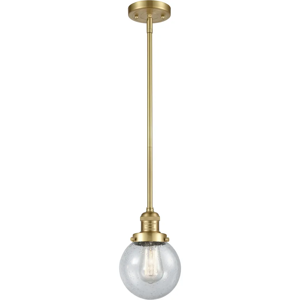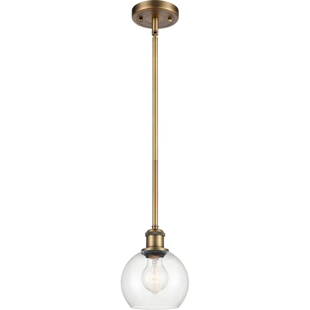 The Bare Bulb 1 Light Pendant is part of the Ballston Collection. Includes 1-6 and 2-12 inch Stems. Additional Stems sold separately. Solid Brass 90 Degree Hang Straight Swivel for Sloped Ceilings Included