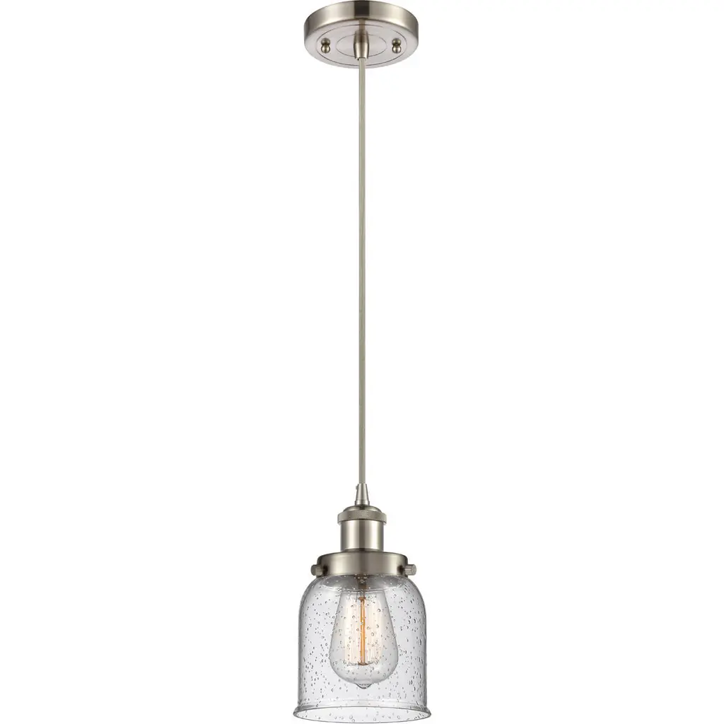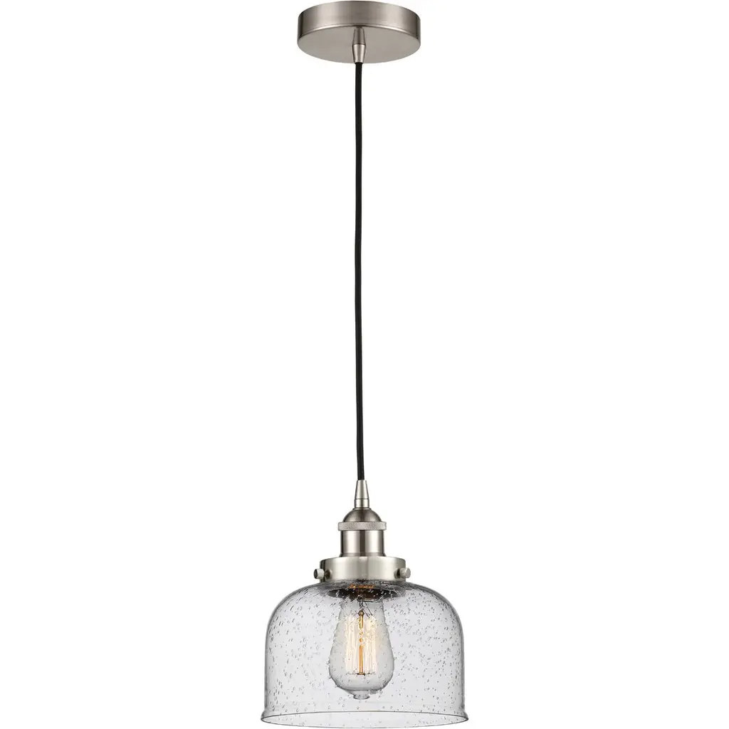 The Large Bell 1 Light Mini Pendant is part of the Ballston Collection. Includes 10 Feet Brown Wire