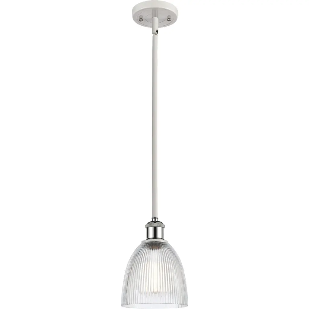 The Castile 1 Light Pendant is part of the Ballston Collection. Includes 1-6 and 2-12 inch Stems With Solid Brass 90 Degree Hang Straight Swivel for Sloped Ceilings. Solid Brass 90 Degree Hang Straight Swivel for Sloped Ceilings Included