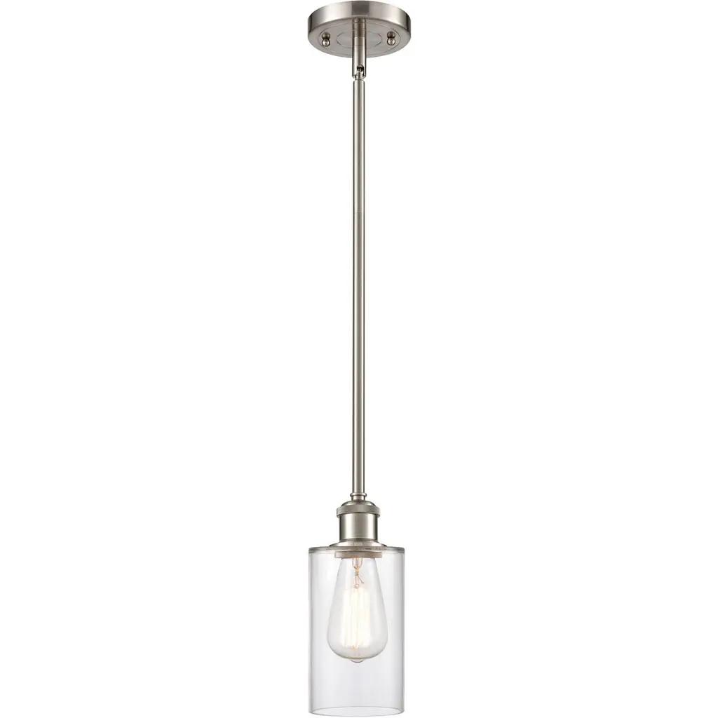The Clymer 1 Light Pendant is part of the Ballston Collection. Includes 1-6 and 2-12 inch Stems With Solid Brass 90 Degree Hang Straight Swivel for Sloped Ceilings. Solid Brass 90 Degree Hang Straight Swivel for Sloped Ceilings Included