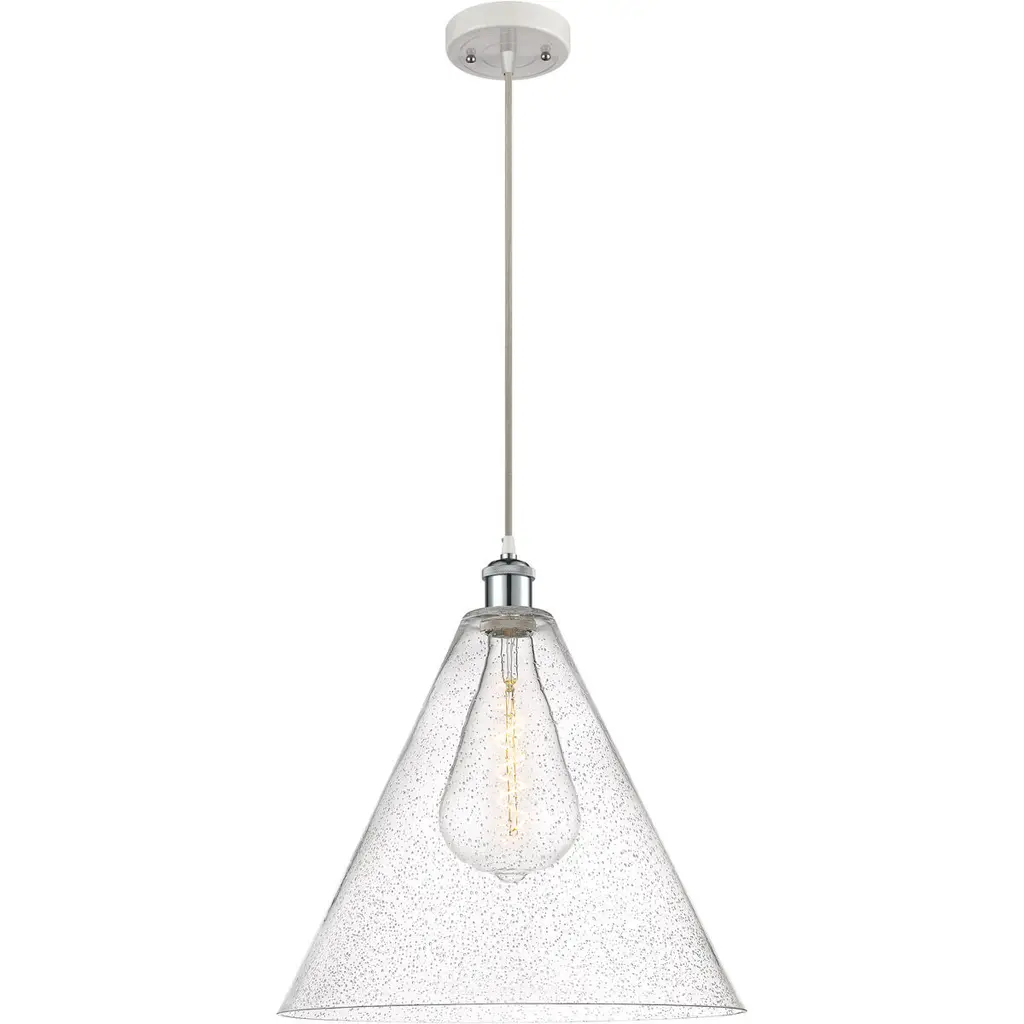 Ballston Cone 1 Light 16 Inch White And Polished Chrome Pendant Ceiling Light In Clear Glass