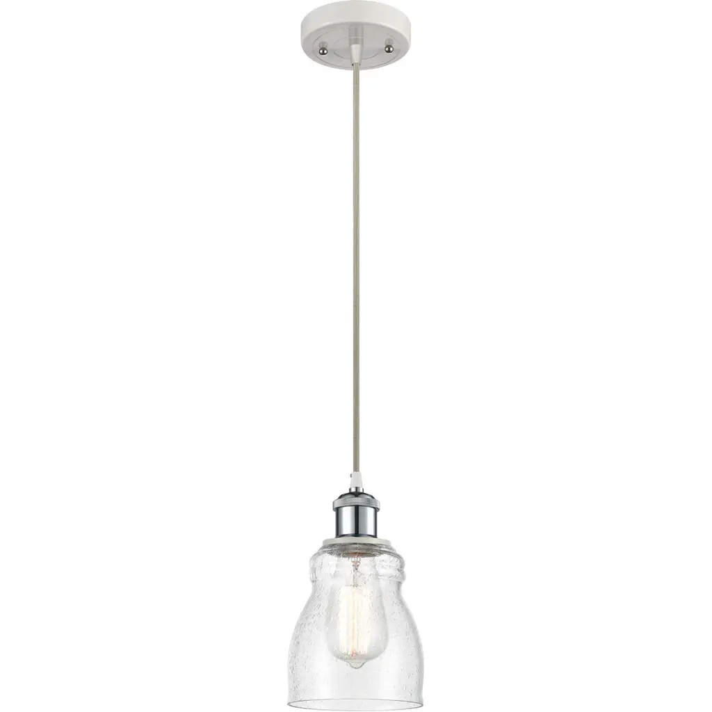 Ballston Ellery 1 Light 5 Inch White And Polished Chrome Mini Pendant Ceiling Light In Seedy Glass, Ballston