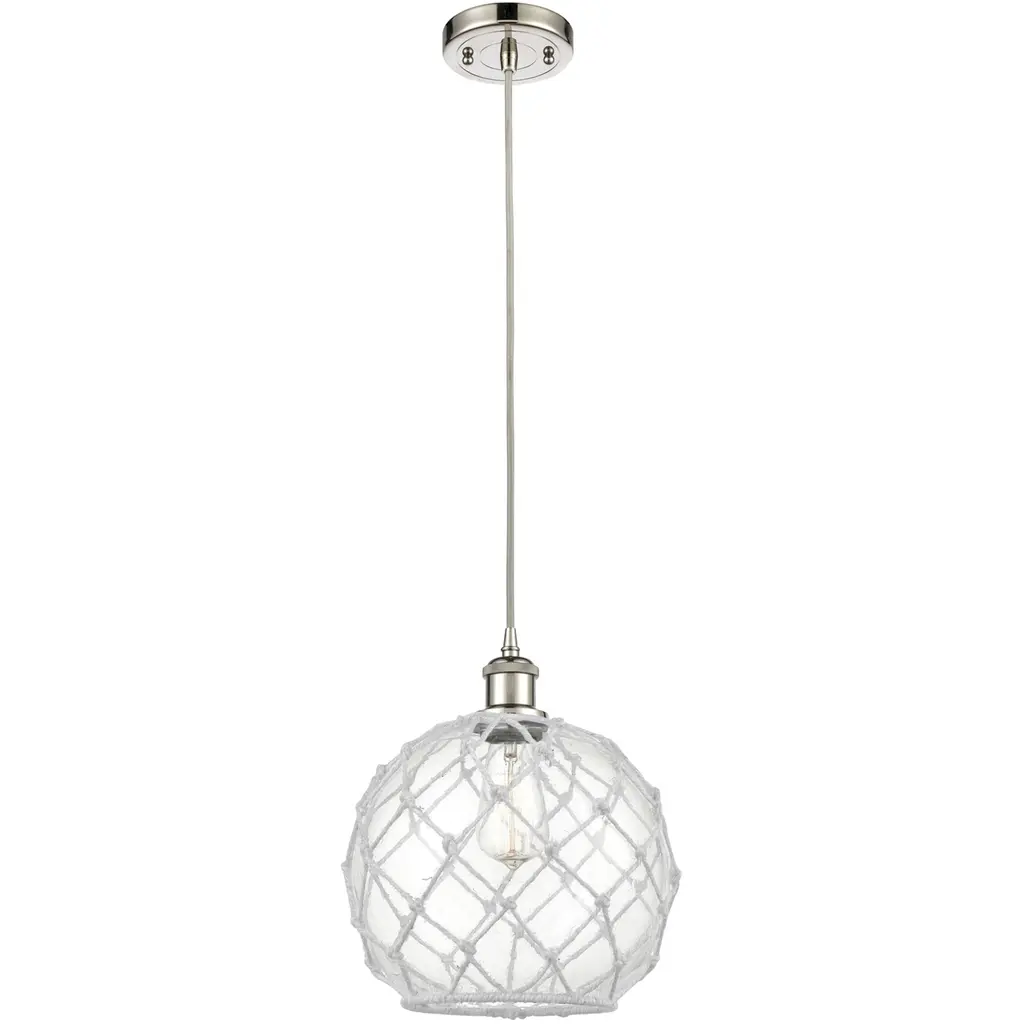 Ballston Farmhouse Rope 1 Light 10 Inch Brushed Satin Nickel Mini Pendant Ceiling Light In Bulb Not Included, Clear Glass With White Rope, Ballston
