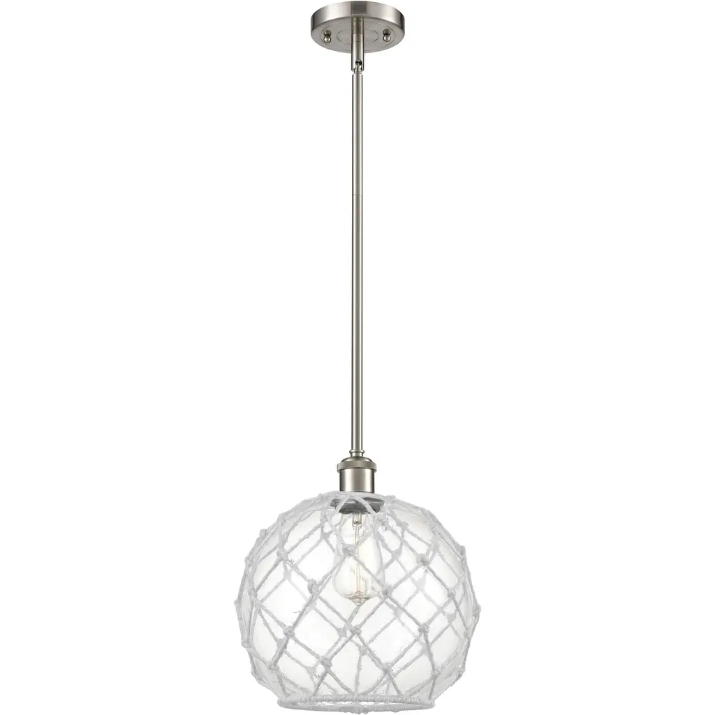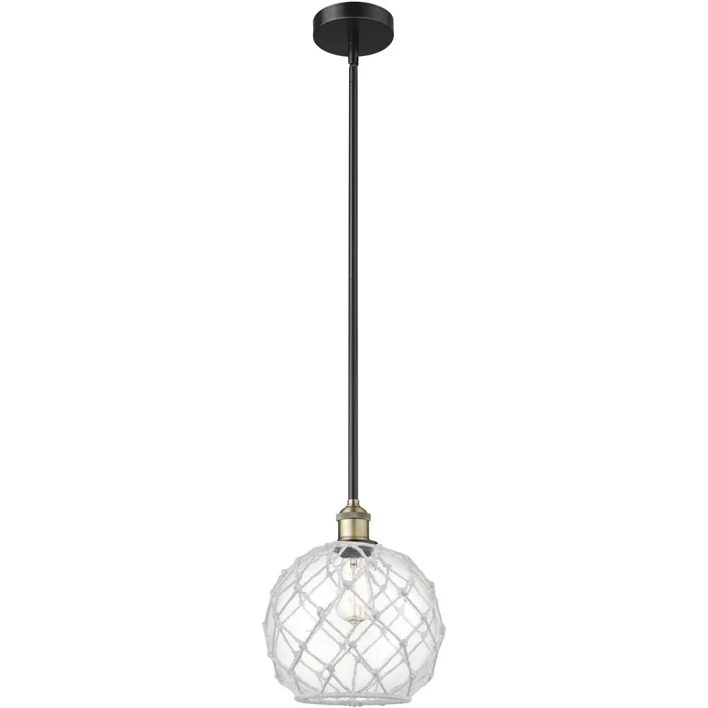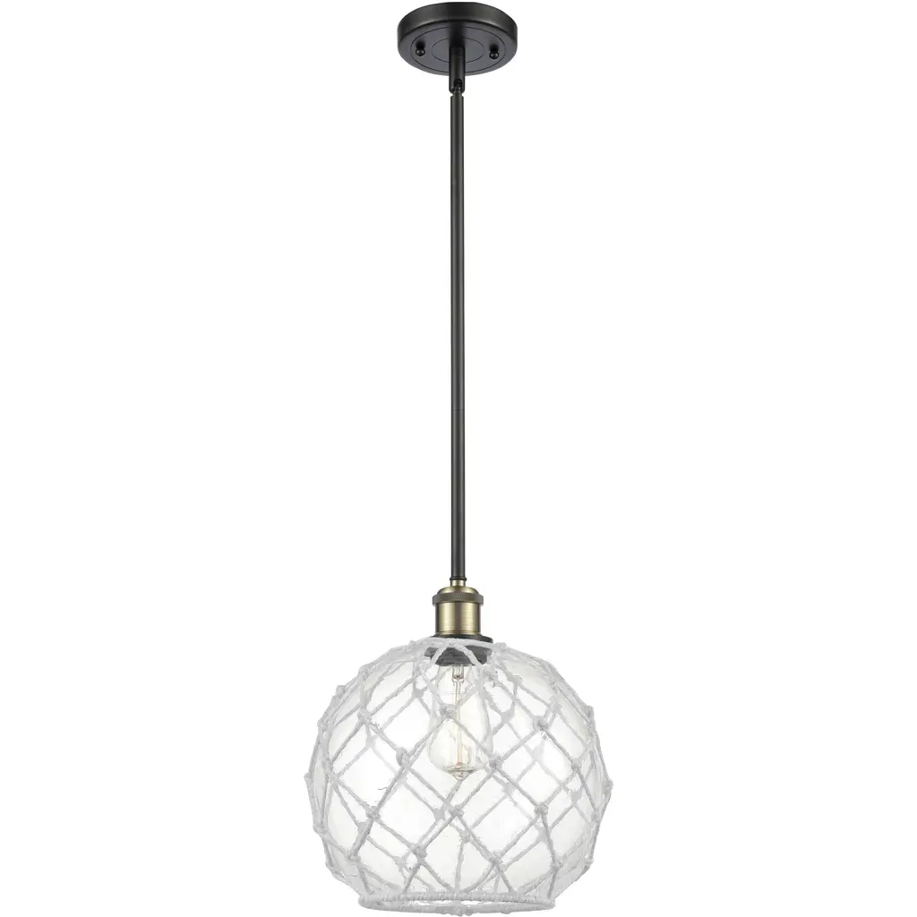 Ballston Farmhouse Rope 1 Light 10 Inch Oil Rubbed Bronze Mini Pendant Ceiling Light In Bulb Not Included, Clear Glass With White Rope, Ballston