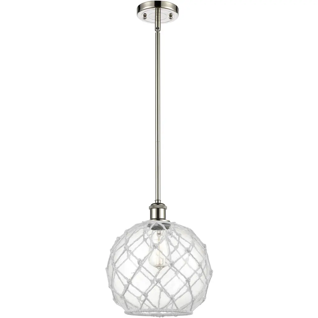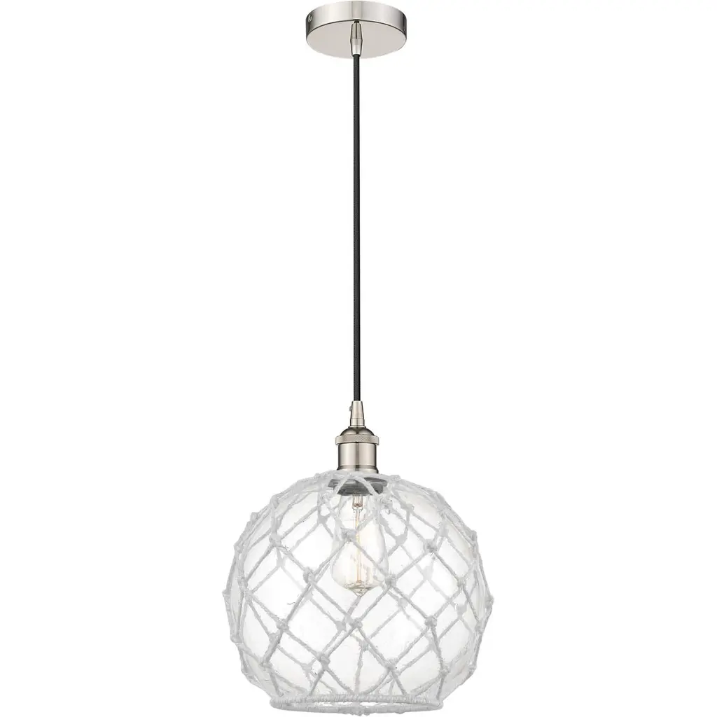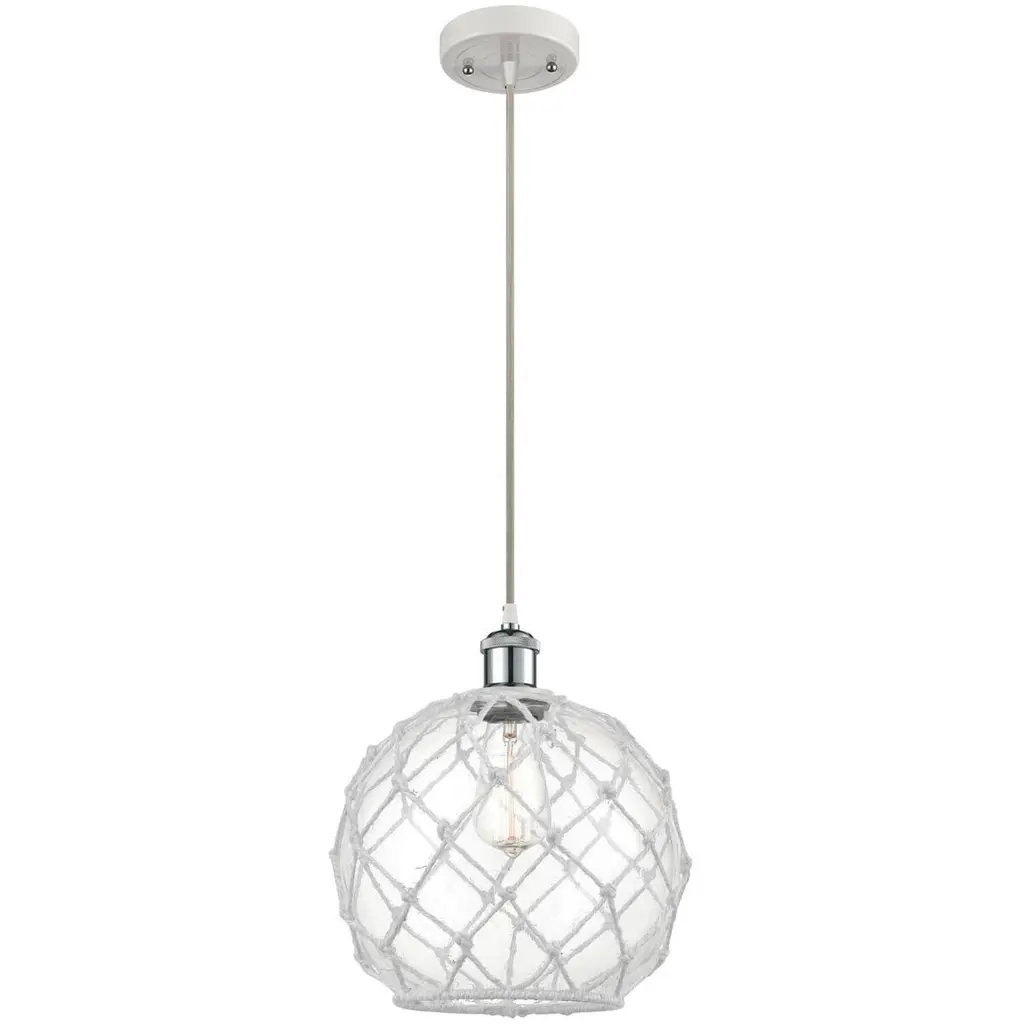 Ballston Farmhouse Rope 1 Light 10 Inch Oil Rubbed Bronze Mini Pendant Ceiling Light In Bulb Not Included, Clear Glass With White Rope, Ballston
