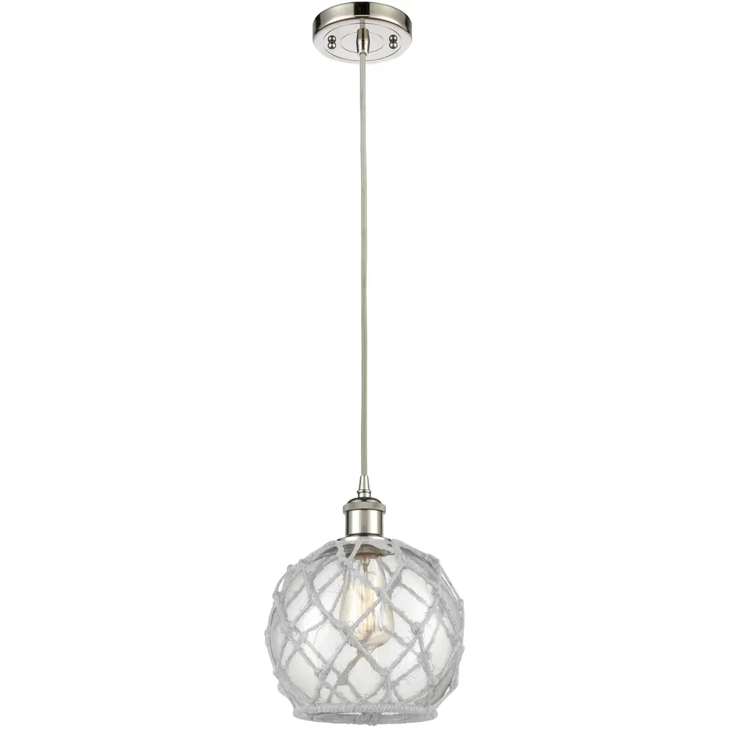 Ballston Farmhouse Rope 1 Light 10 Inch Polished Chrome Mini Pendant Ceiling Light In Bulb Not Included, Clear Glass With White Rope, Ballston