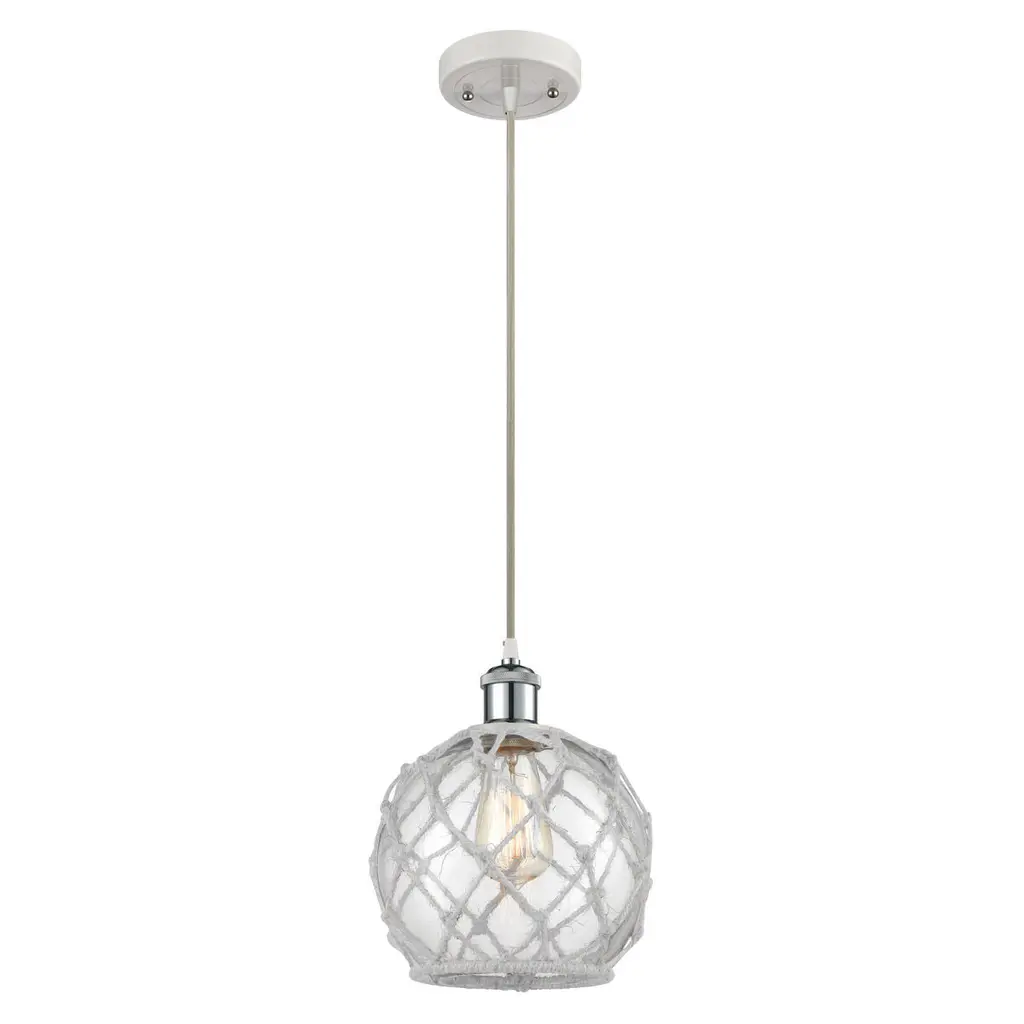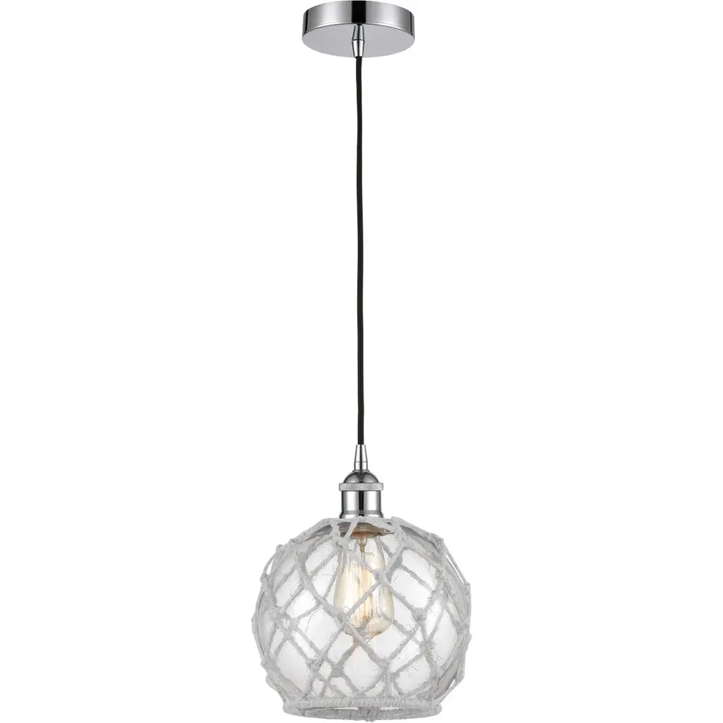 Ballston Farmhouse Rope 1 Light 8 Inch Polished Chrome Mini Pendant Ceiling Light In Bulb Not Included, Clear Glass With White Rope, Ballston
