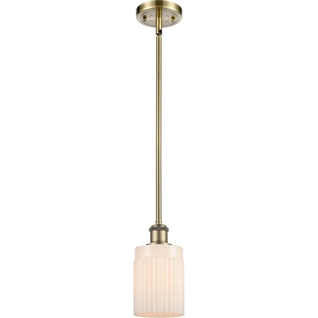 The Hadley 1 Light Pendant is part of the Ballston Collection. Includes 1-6 and 2-12 inch Stems With Solid Brass 90 Degree Hang Straight Swivel for Sloped Ceilings. Solid Brass 90 Degree Hang Straight Swivel for Sloped Ceilings Included