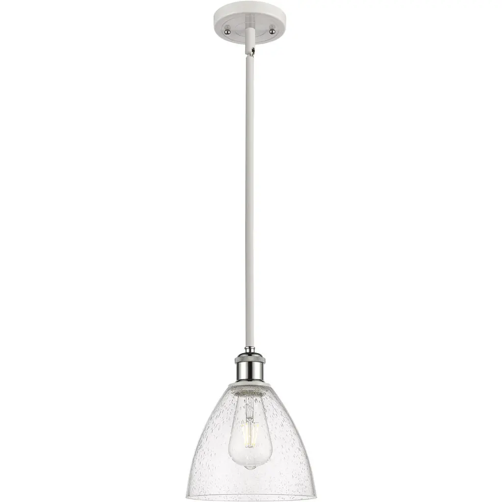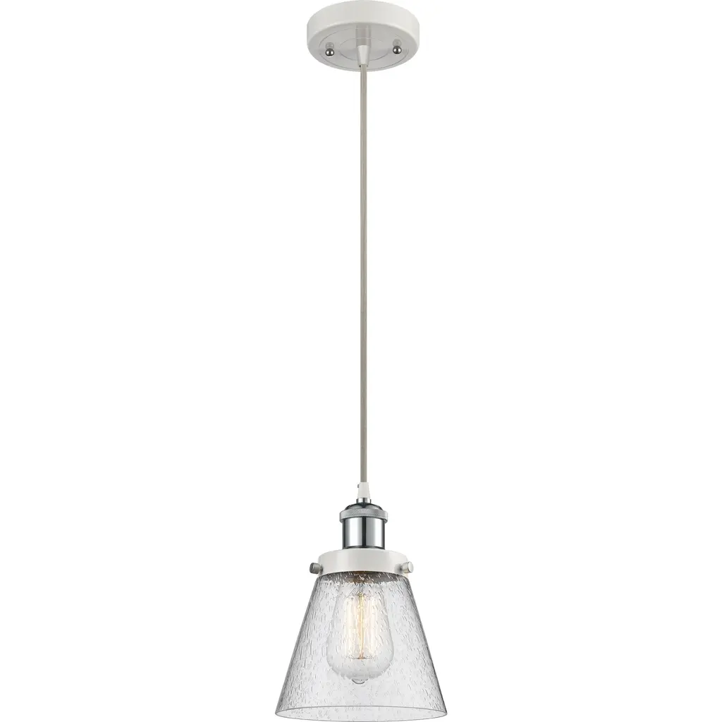 Ballston Large Cone 1 Light 8 Inch White And Polished Chrome Pendant Ceiling Light In Clear Glass