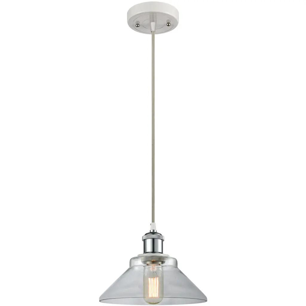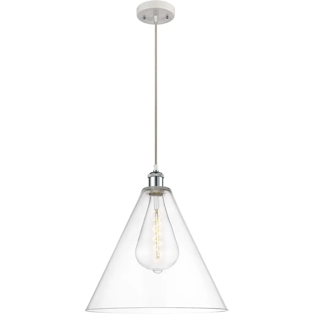 Ballston Large Cone Led 8 Inch White And Polished Chrome Mini Pendant Ceiling Light In Clear Glass